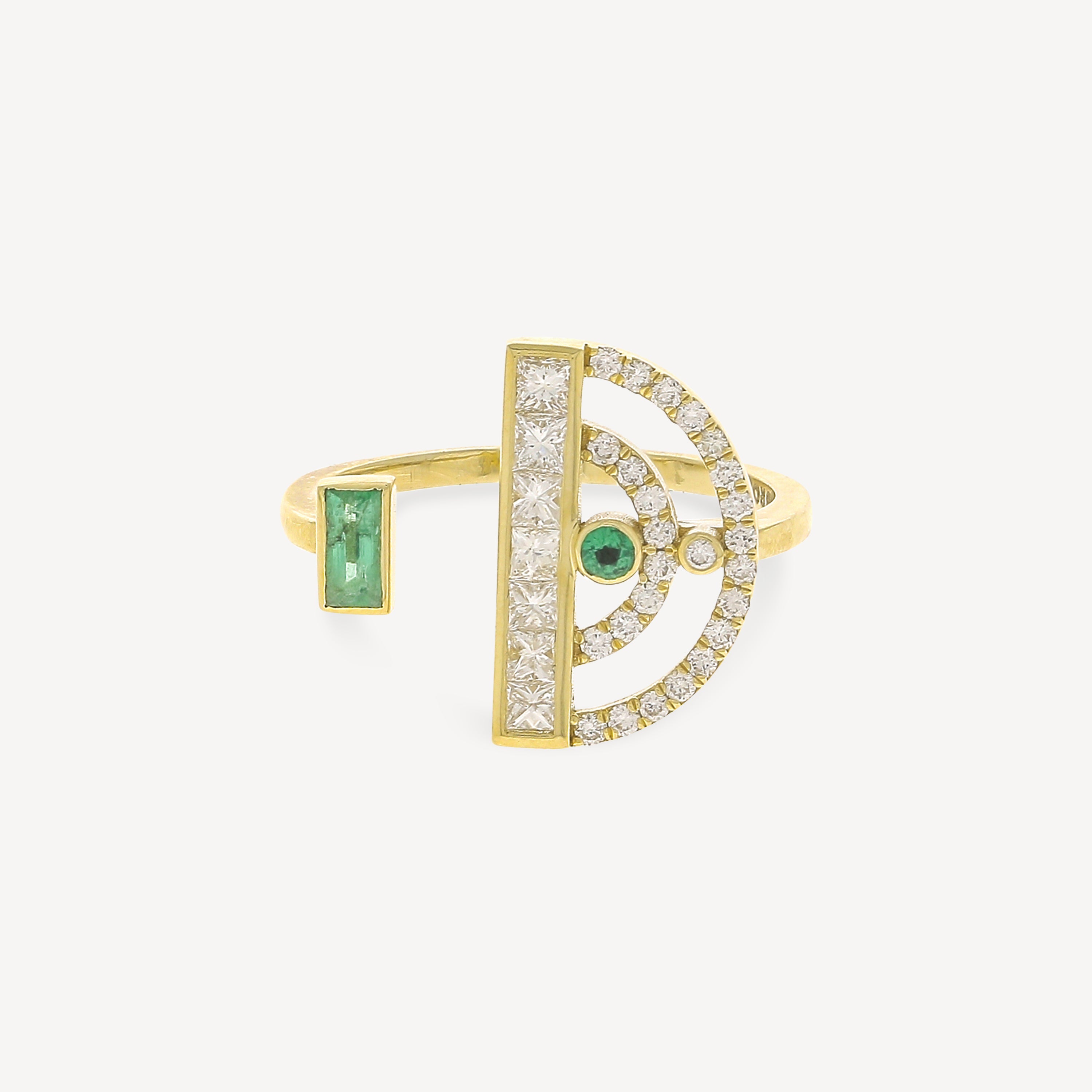 - Materialien: Gelbgold, weißer Diamant, Smaragd