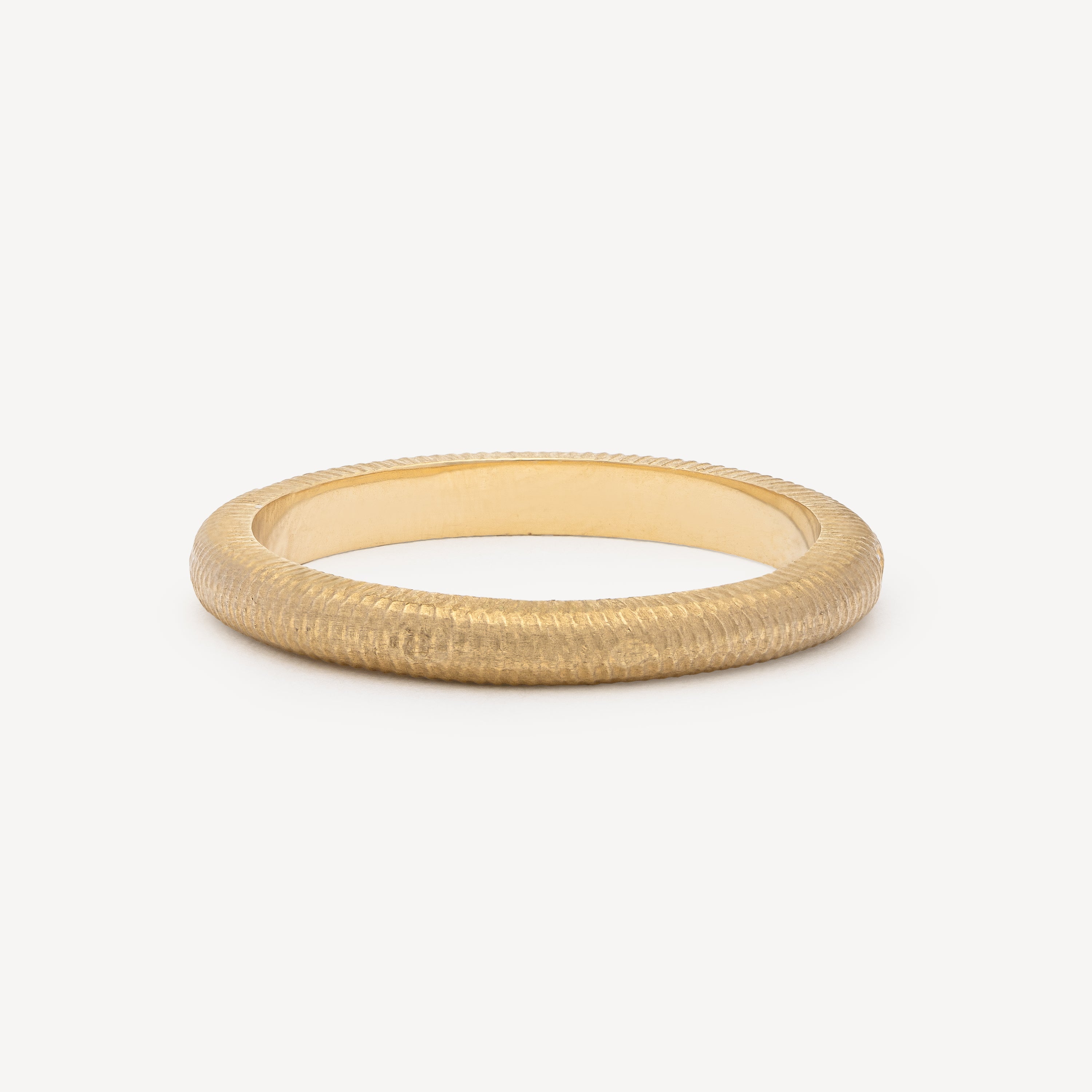 La bague Curve avec diamants est une alliance traditionnelle avec une finition non conventionnelle. Chaque bague est créée à la main avec la signature de Dulong, une surface cannelée et profilée à la main sur l'extérieur. L'intérieur est poli, de sorte que l'anneau est confortable et facile à mettre et à enlever.