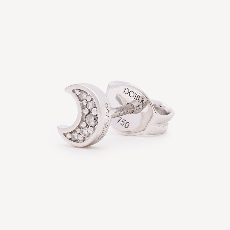 La boucle d'oreille Moon Diamond est un reflet lumineux de l'énergie mystique de la lune. Connue pour son lien avec les émotions, l'intuition et les nouveaux départs, cette pièce délicate représente la lumière qui brille même dans les moments les plus sombres. Le diamant blanc symbolise la pureté et l’innocence.