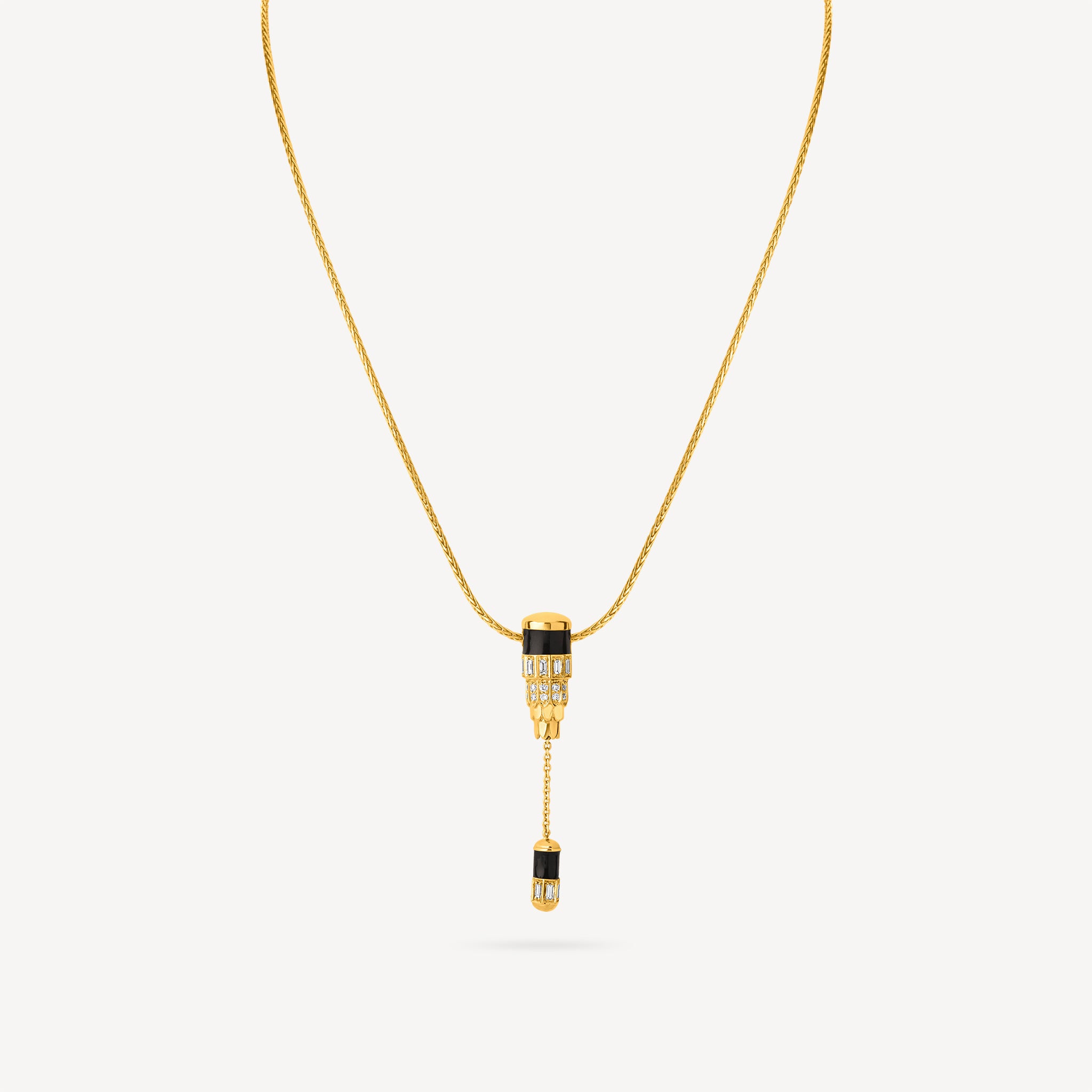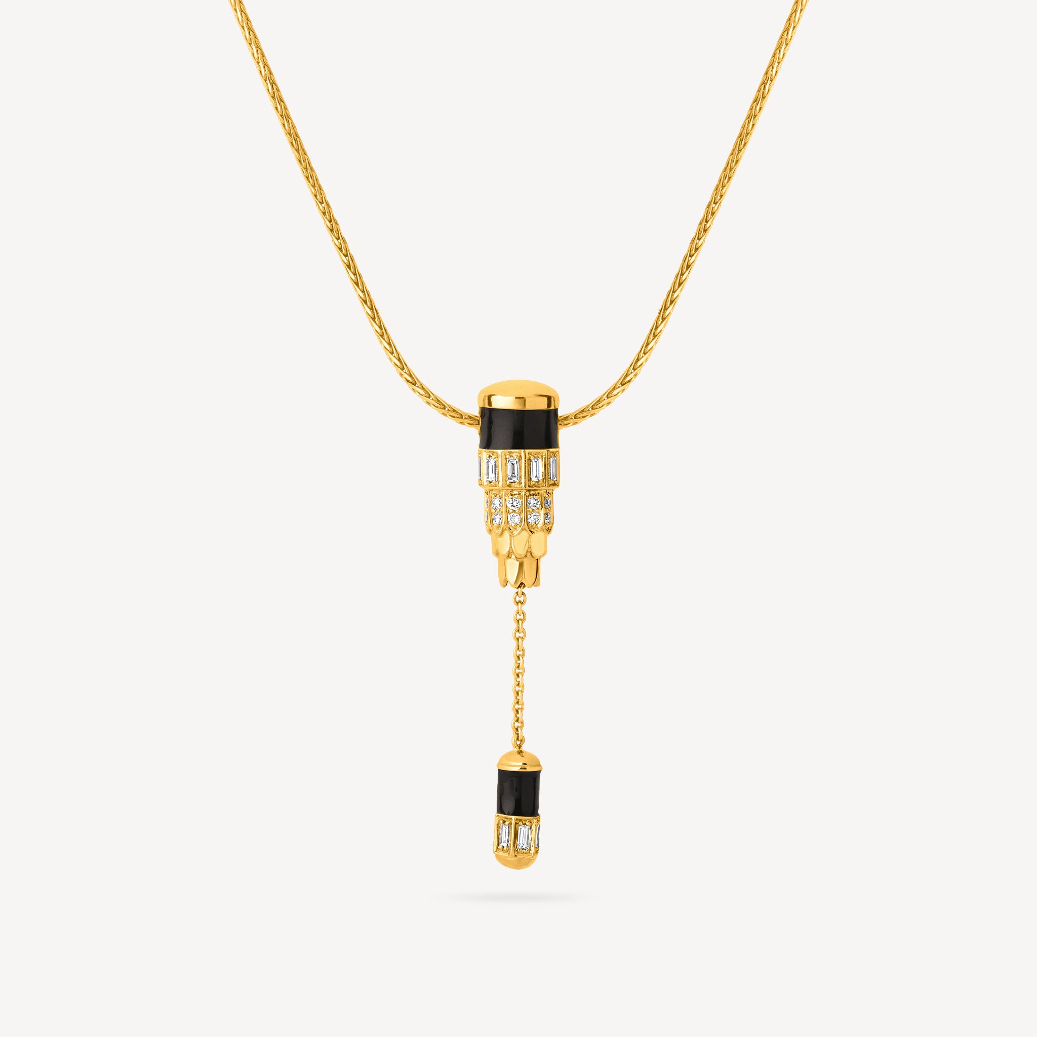 Admirez l'élégance du collier Skyward, une création de la collection Empire State signée Mirari. Cette pièce architecturale marie l'intensité de l'émail noir à la chaleur rayonnante de l'or jaune, sublimée par l'éclat des diamants. Le design Skyward incarne l'aspiration et la verticalité, guidant le regard vers les hauteurs avec grâce. Le diamant agit comme un miroir de l’âme, révélant l’essentiel.