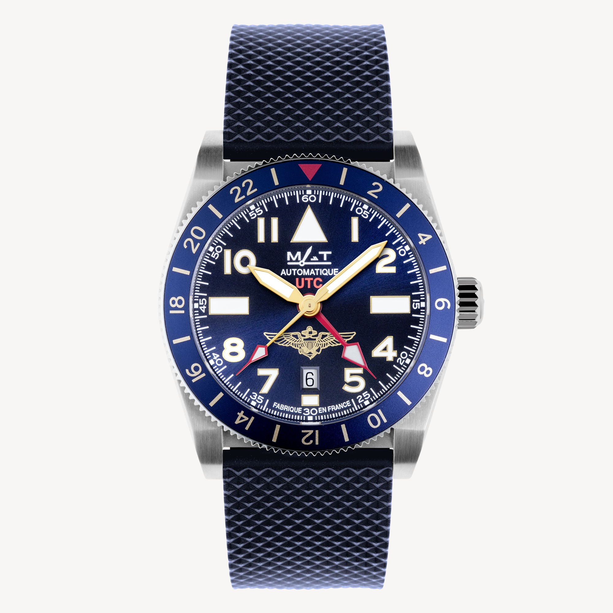 Durchmesser 42,5 mm – Gehäuse aus 316L-Edelstahl – 2,8 mm dickes Saphirglas, kratzfest, entspiegelt – wasserdicht bis 200 Meter – verschraubte Krone und Rückseite – blaues Sonnenschliff-Zifferblatt – Super Luminova BGW9-Indizes und Zeiger – Schweizer Automatik Bewegung