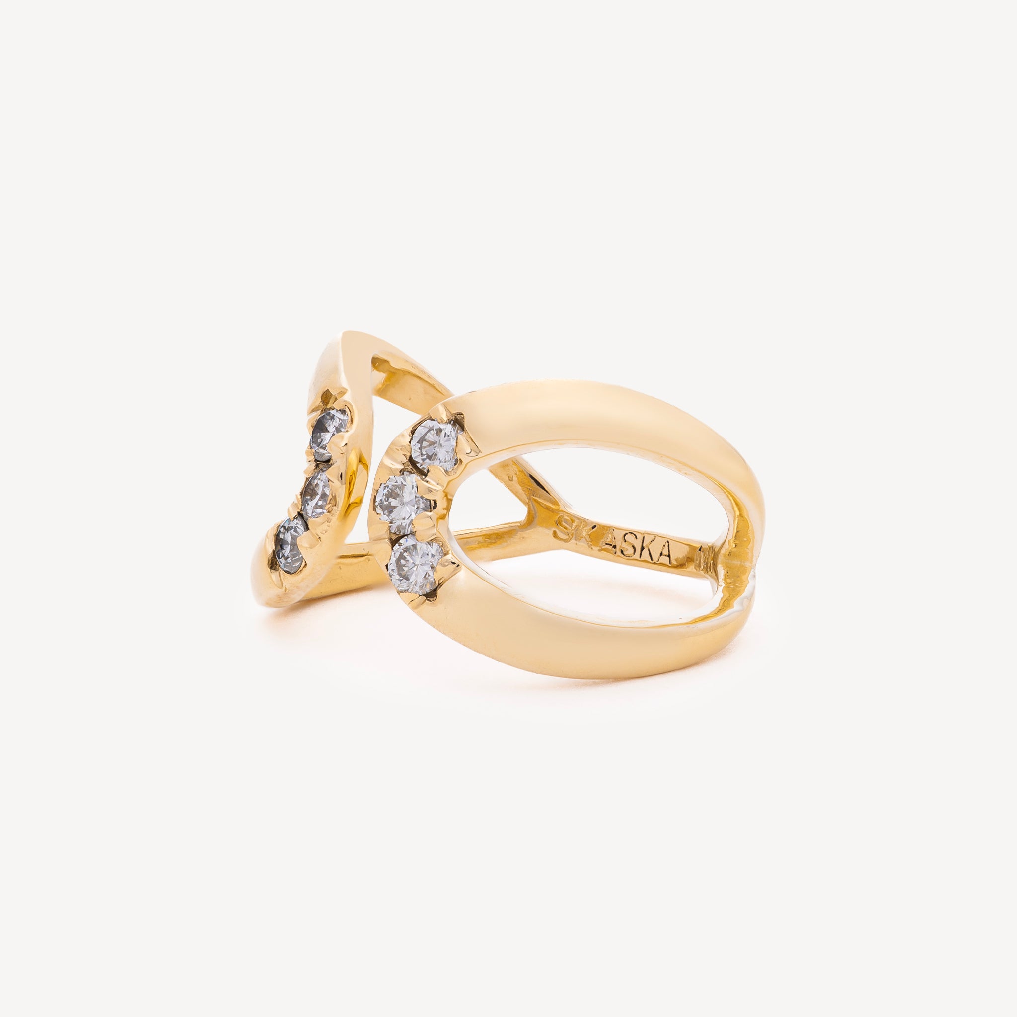 La bague Double Open Wrap Diamonds signée Skaska est confectionnée en or 14 carats. Elle présente un design raffiné alliant sophistication et style contemporain. Sa structure ouverte encadre élégamment votre doigt tandis que les diamants étincelants ajoutent une touche raffinée. Le diamant blanc incarne la pureté et la force intérieure.