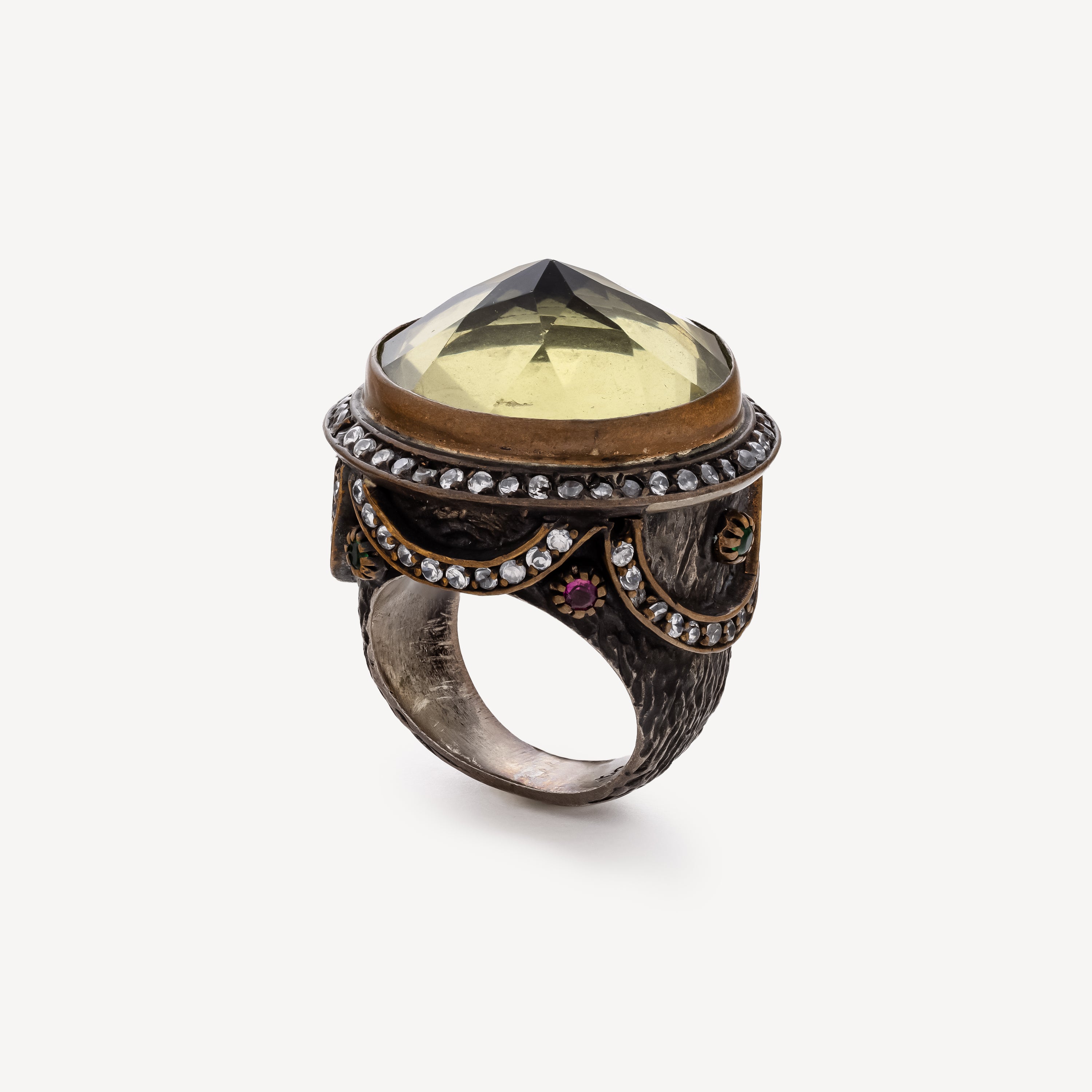 - Materialien: Silber, Prasiolith, Zirkon, Rubellit, Peridot