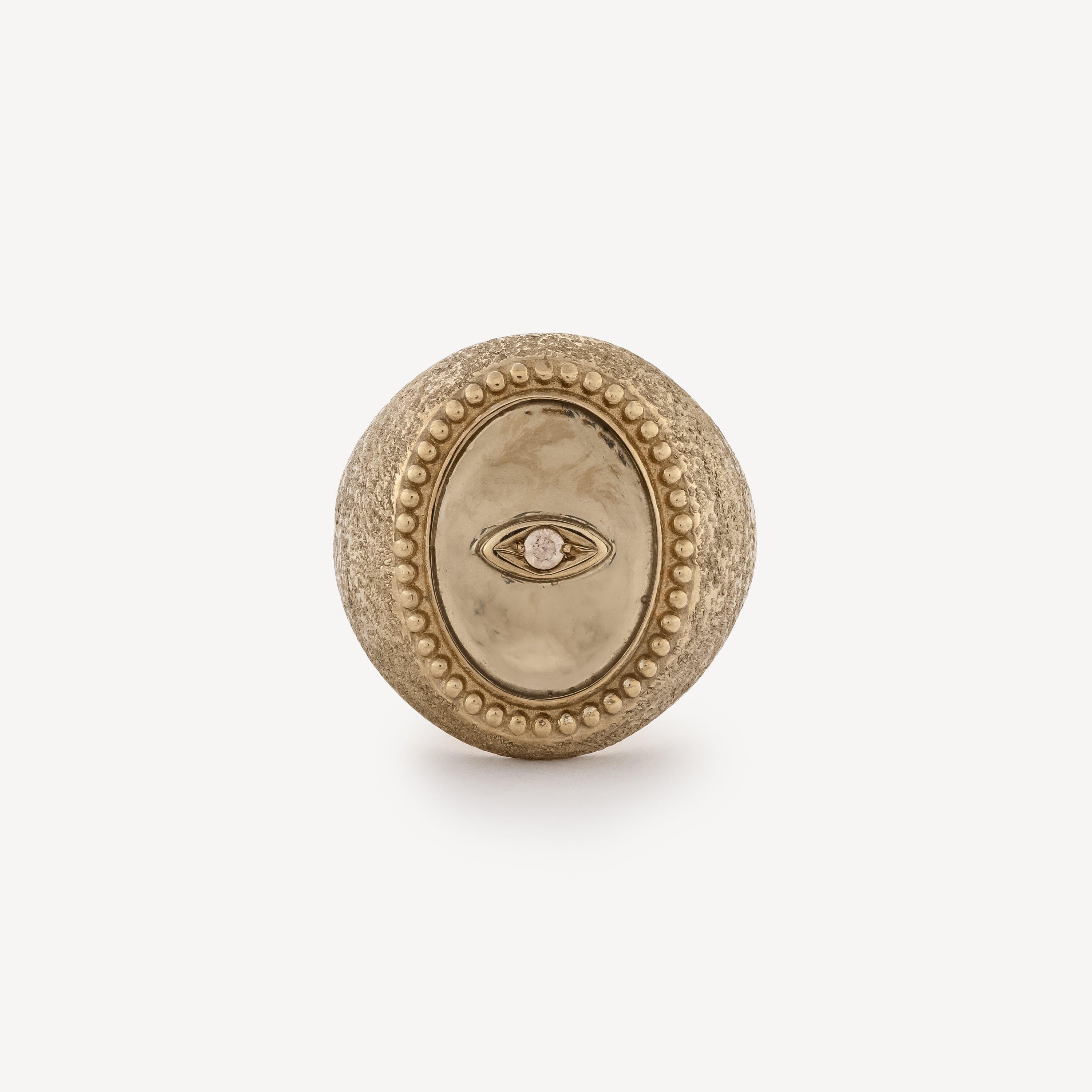 Siegelring aus Gelbgold mit zentraler Öse, besetzt mit einem Diamanten.