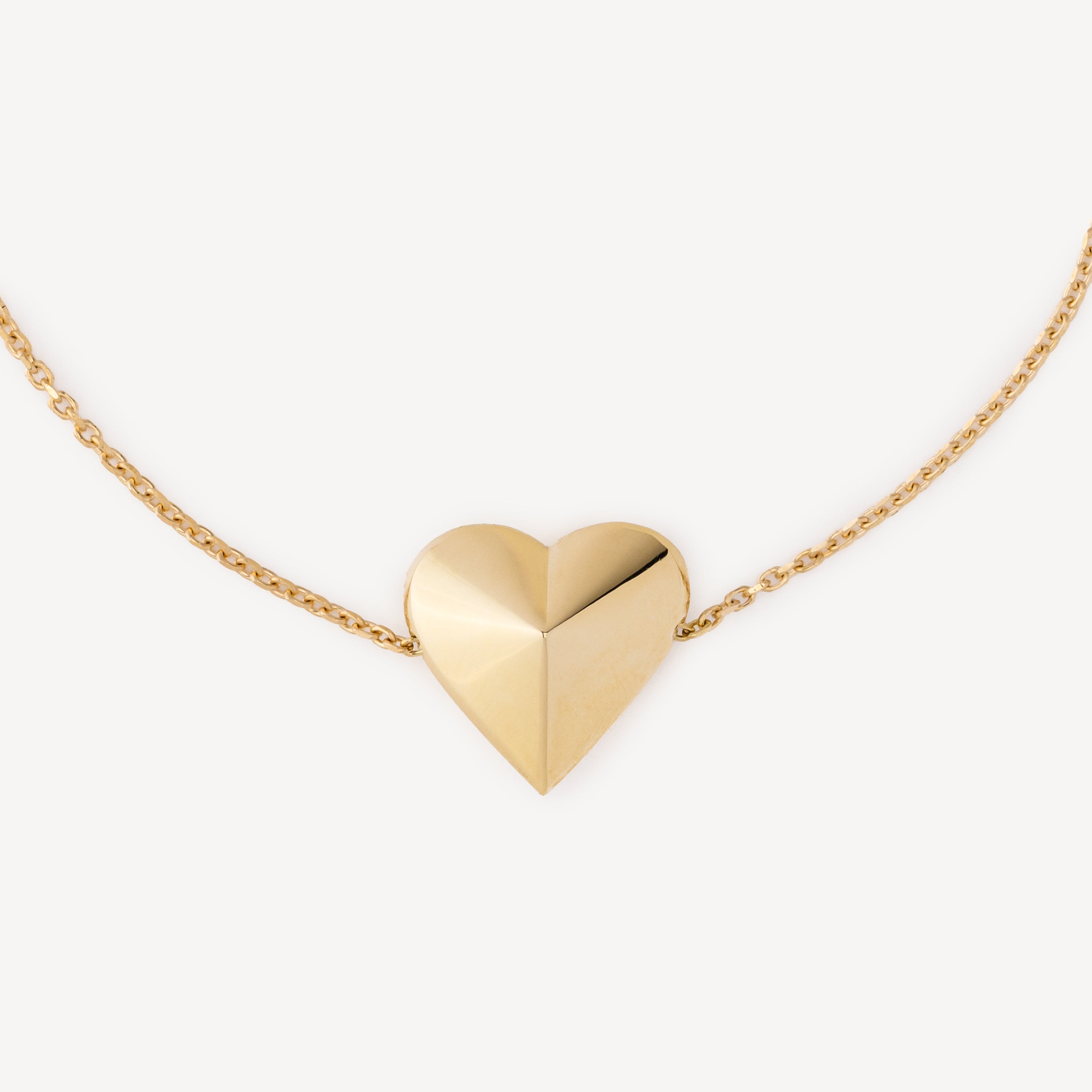 Bracelet en or jaune avec un cœur géométrique central et un fermoir plat réglable.