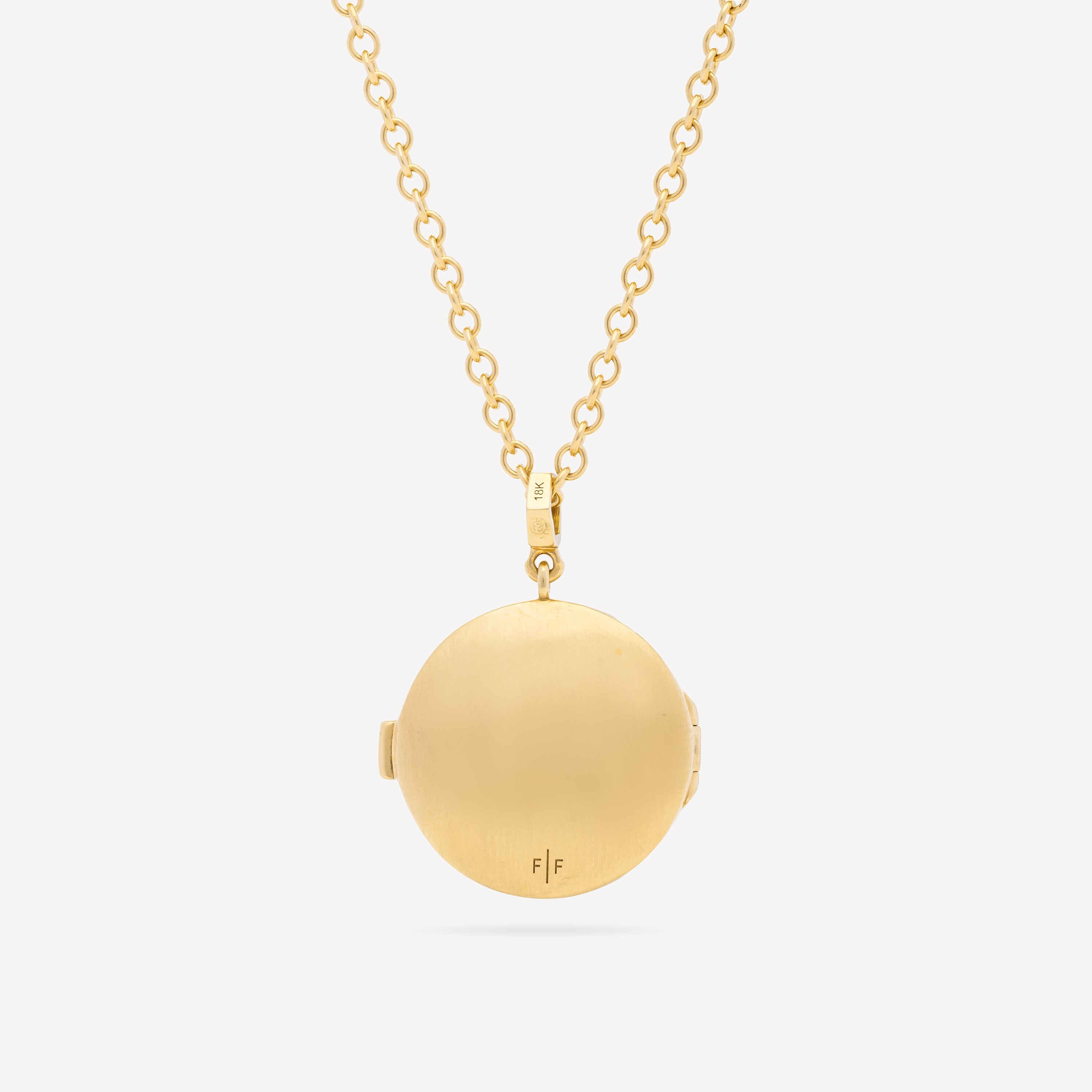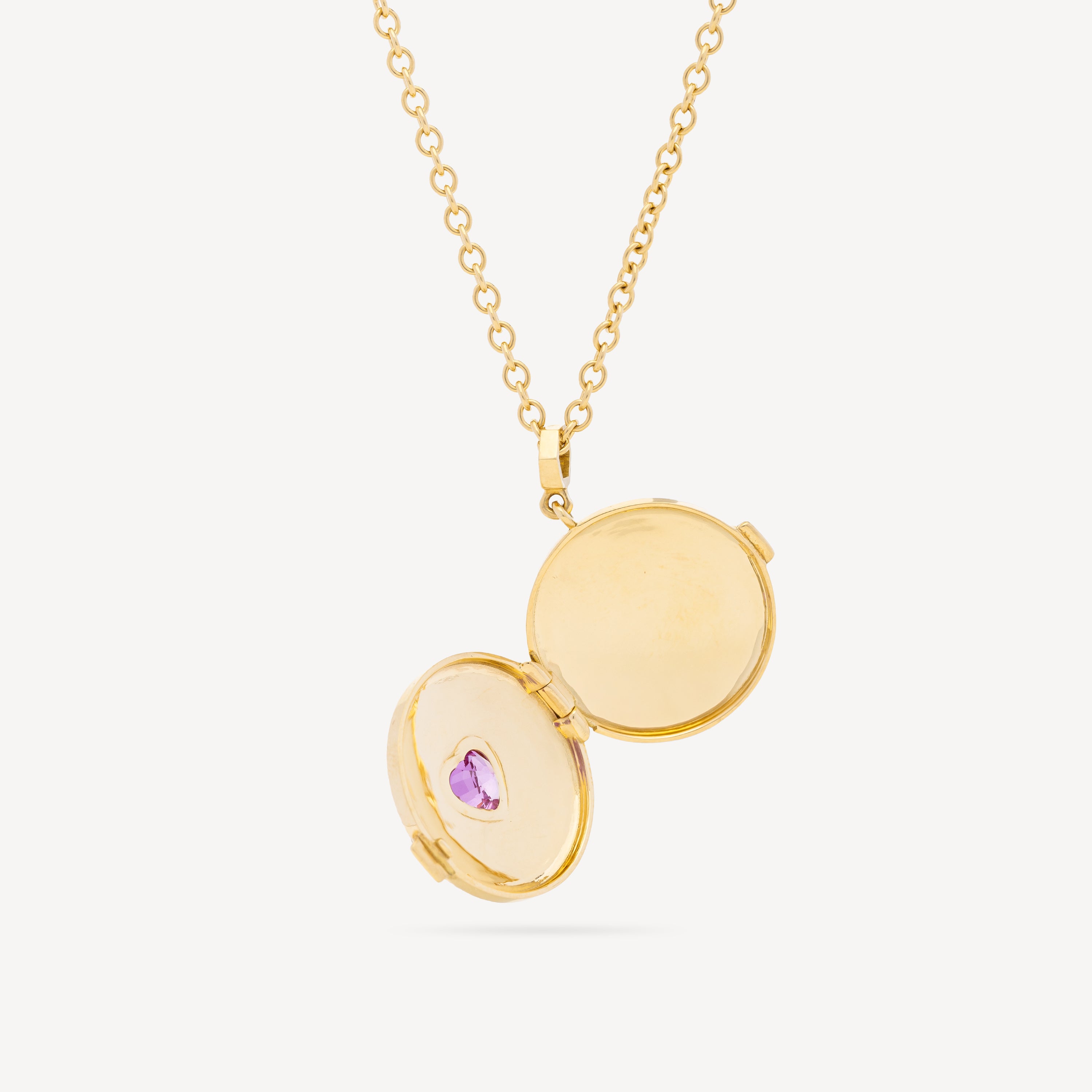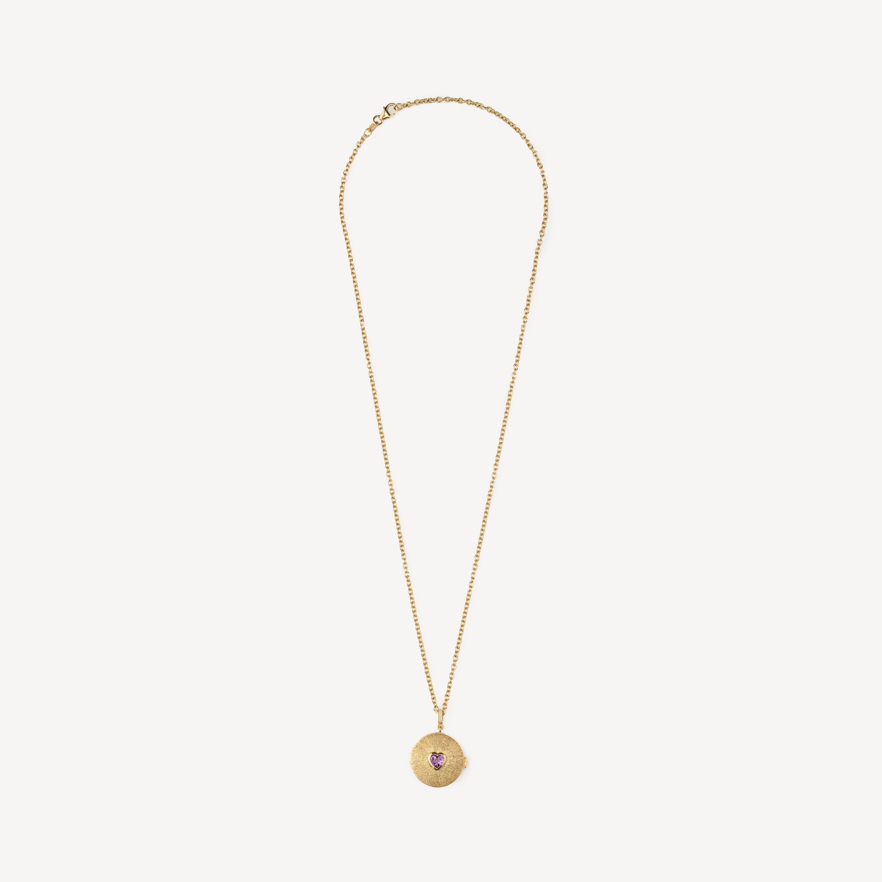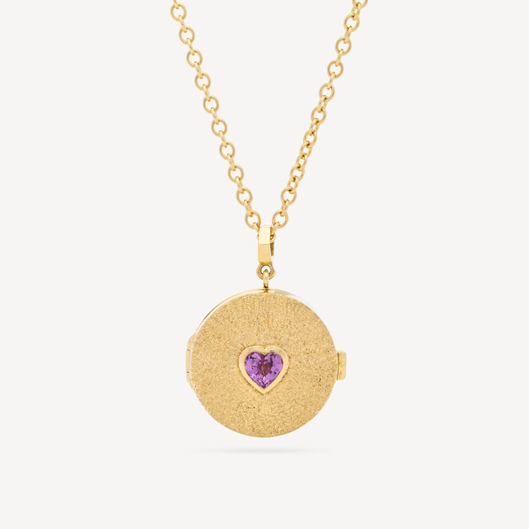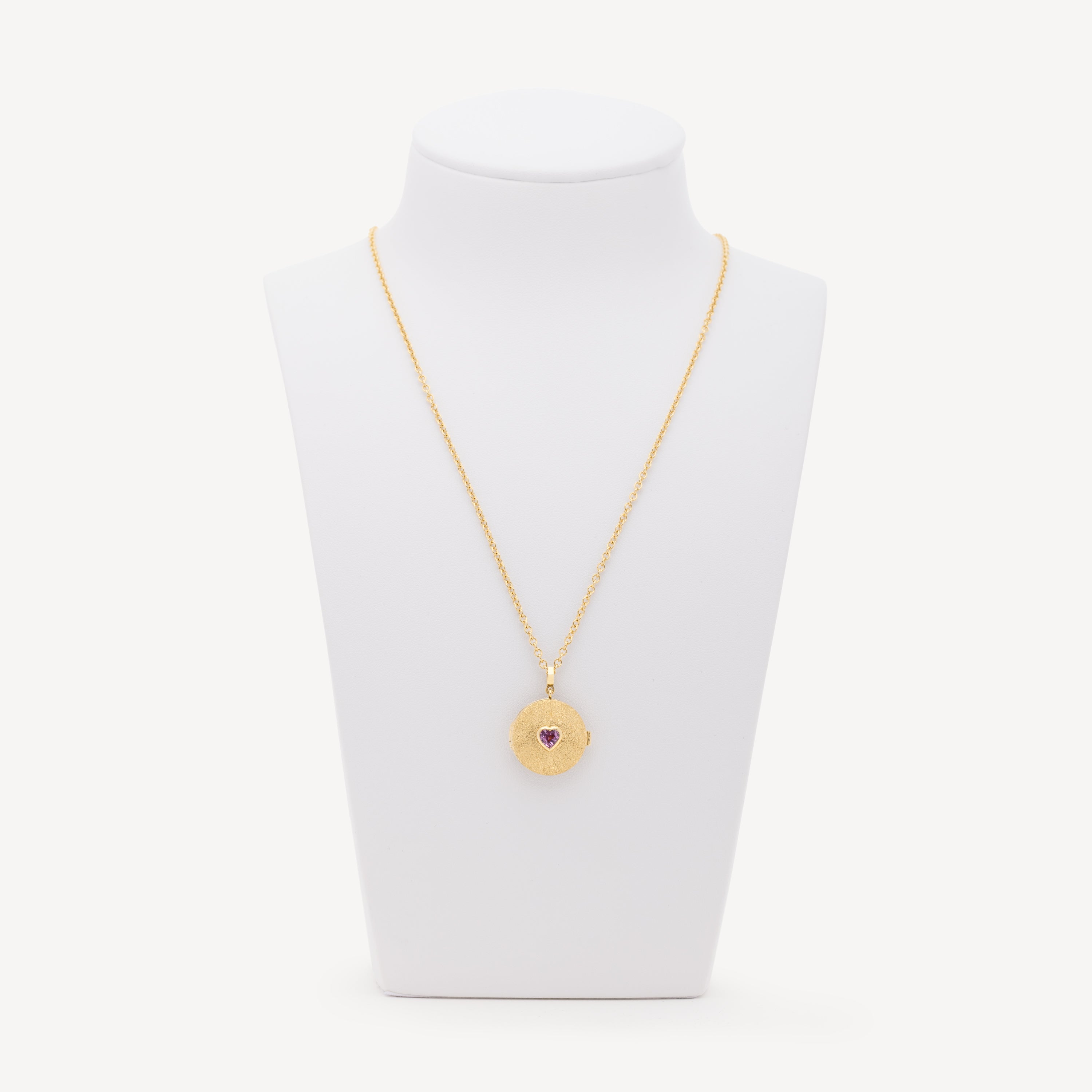Collier en or jaune composé d'un médaillon qui s'ouvre ainsi que d'un saphir en forme de cœur.