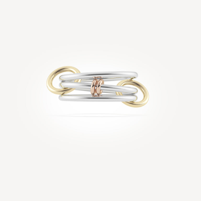 La bague Acacia se distingue par son design contemporain : trois anneaux fins soutiennent deux éléments mobiles en métal. Délicate et légère, elle incarne un minimalisme puissant. Ses connecteurs permettent de la porter étalée sur plusieurs doigts ou empilée en une pièce sculpturale.