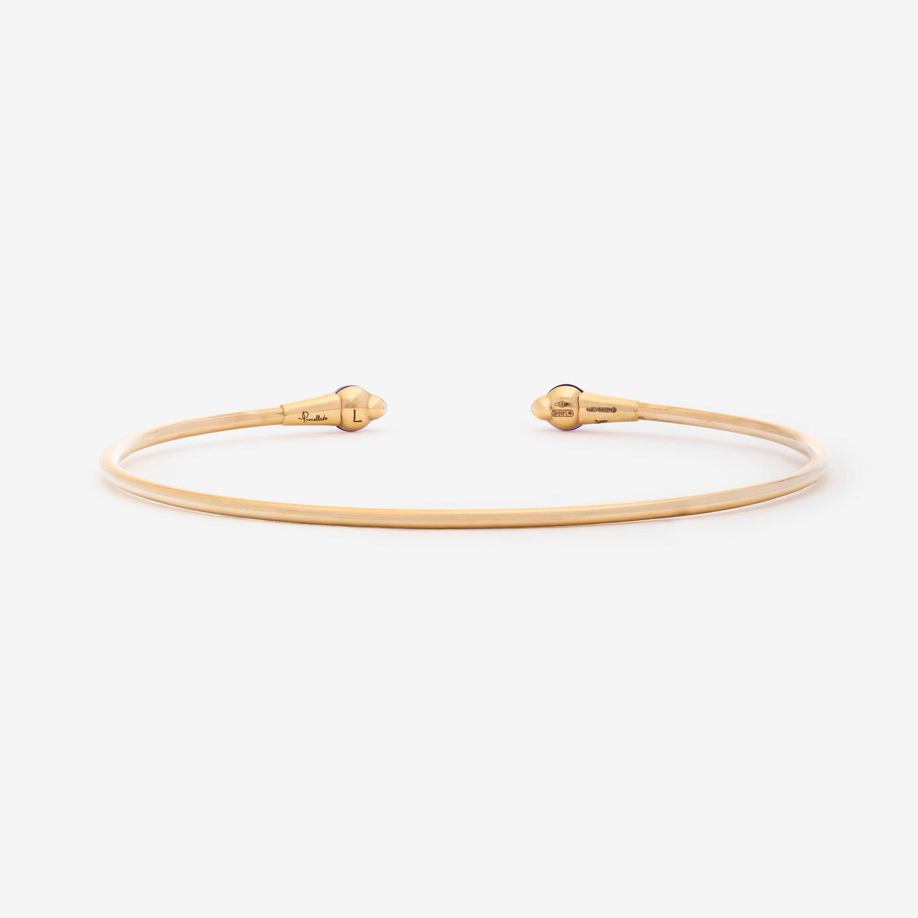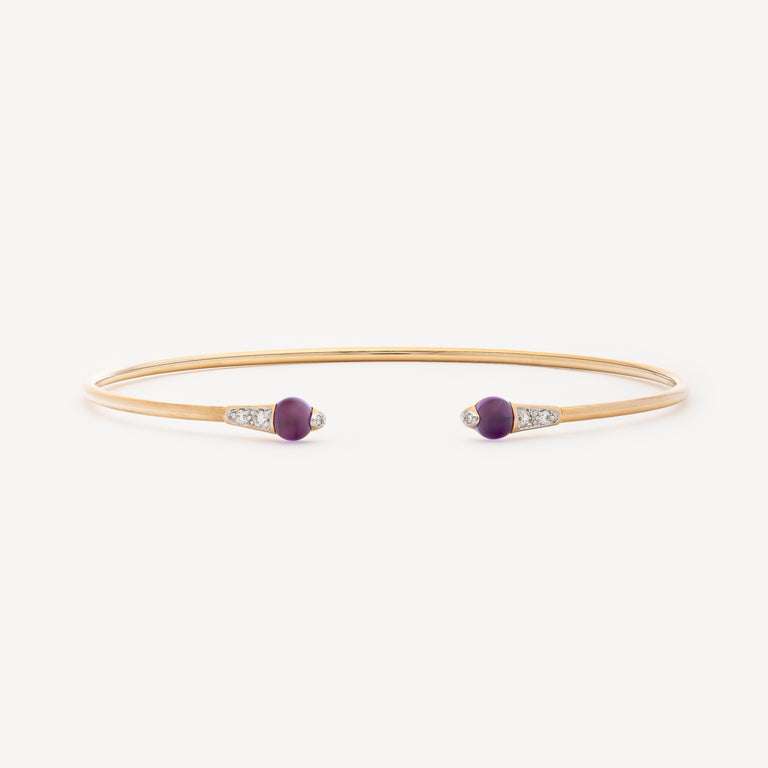Bracelet jonc en or jaune orné de deux améthystes et de diamants blancs en bout de jonc.