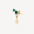 Cette boucle d'oreille est en or jaune 14 carats et sertie d'opales noires d'Éthiopie, d'émeraudes d'un vert éclatant et de diamants. Une délicate poire pend du bas, créant un mouvement subtil.