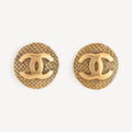 Boucles d’oreilles clips vintage en métal finition dorée avec motif tressé et logo Chanel central.