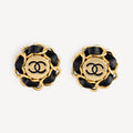 Boucles d’oreilles clips vintage en métal finition dorée et cuir tressé. Logo Chanel central.