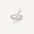 Magnifique bague en or blanc en motif serpent pavée de diamants blancs et verts.