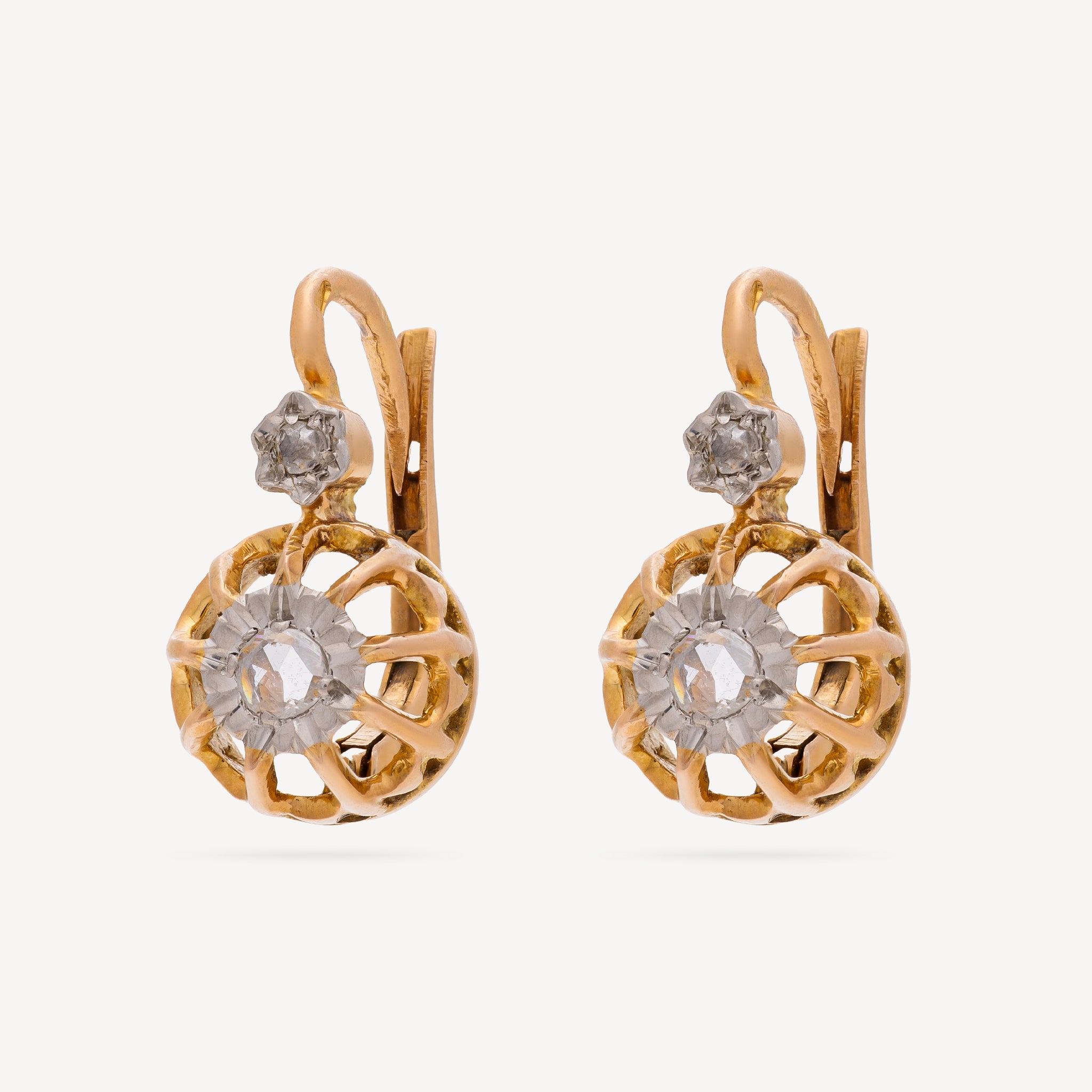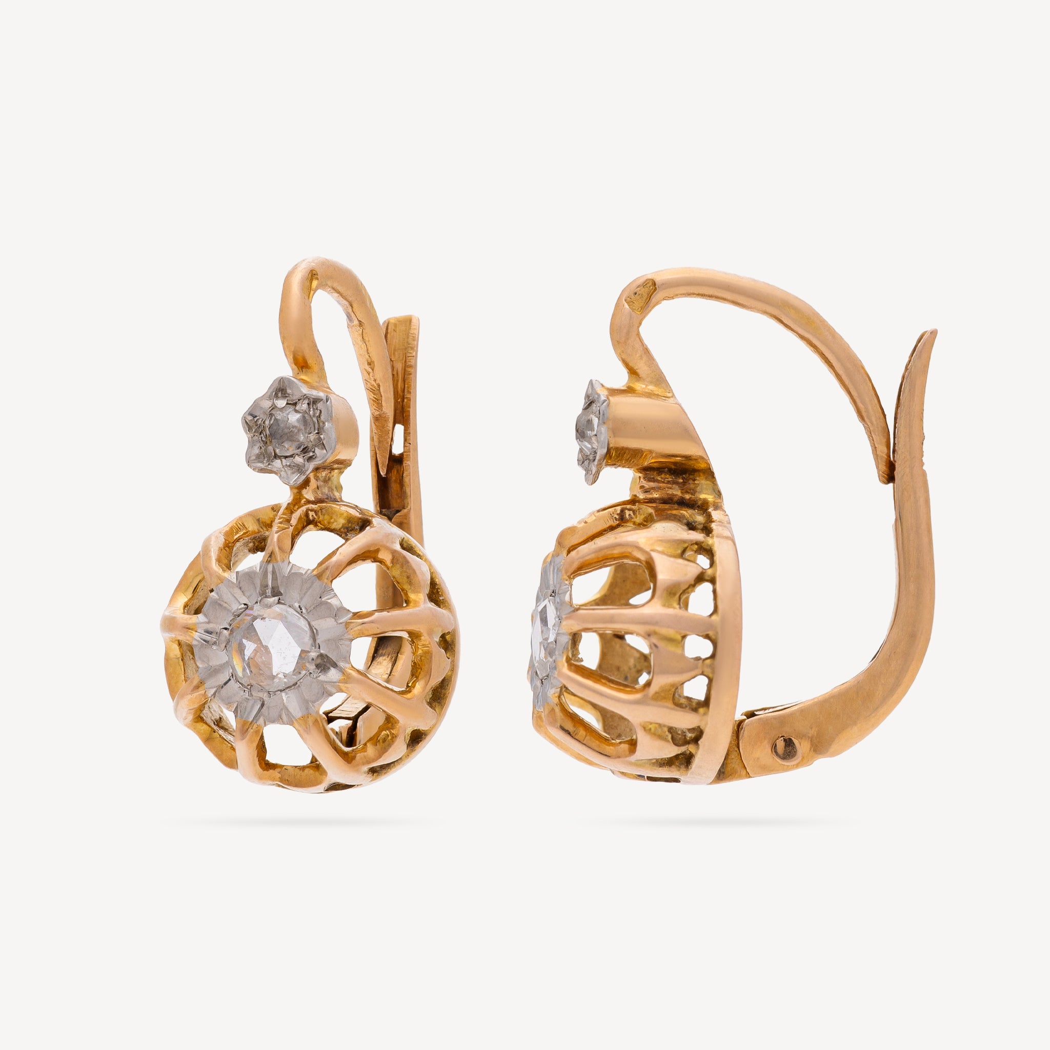 Paire de boucles d’oreille vintage en or jaune et diamants.