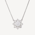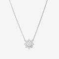 Sunflower flower pendant necklace set with 9 white diamonds.