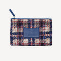 Sac Timeless Chanel en nylon et motif tweed bleu rouge et blanc. Hanse en cuir bleu couvert d’une chaîne argentée. Intérieur en toile bleue avec poche zippée et pochette incluse. Vendu avec son certificat d’authenticité d’origine.
