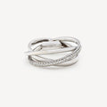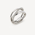 Three intertwined rings ring in white gold set with white diamonds.