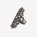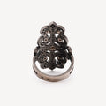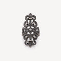Bague en or noir sertie de diamants noirs et diamants blancs taille brillant.
