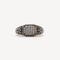 Silver little finger ring with central rectangle paved with white diamonds.
