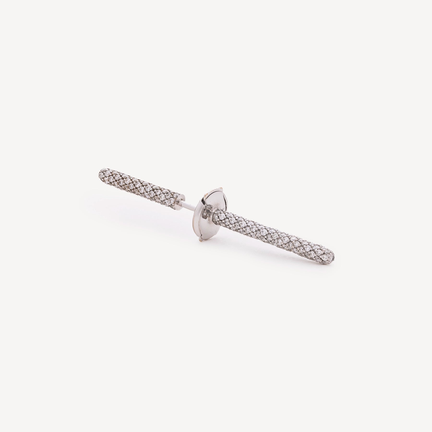 Cette boucle d’oreille Vanrycke en or blanc séduit par sa forme tribale sertie de 218 diamants blancs et comportant un système de fermeture sécurisé. Le diamant blanc, roc indomptable de pureté, tranche les doutes et arme l’âme d’une clarté féroce.