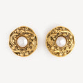 Vintage clip-on earrings in gold-finished metal with a central faux pearl.