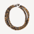 Triple wrap bracelet of Tiger Eye beads mounted on a cord with a silver clasp.