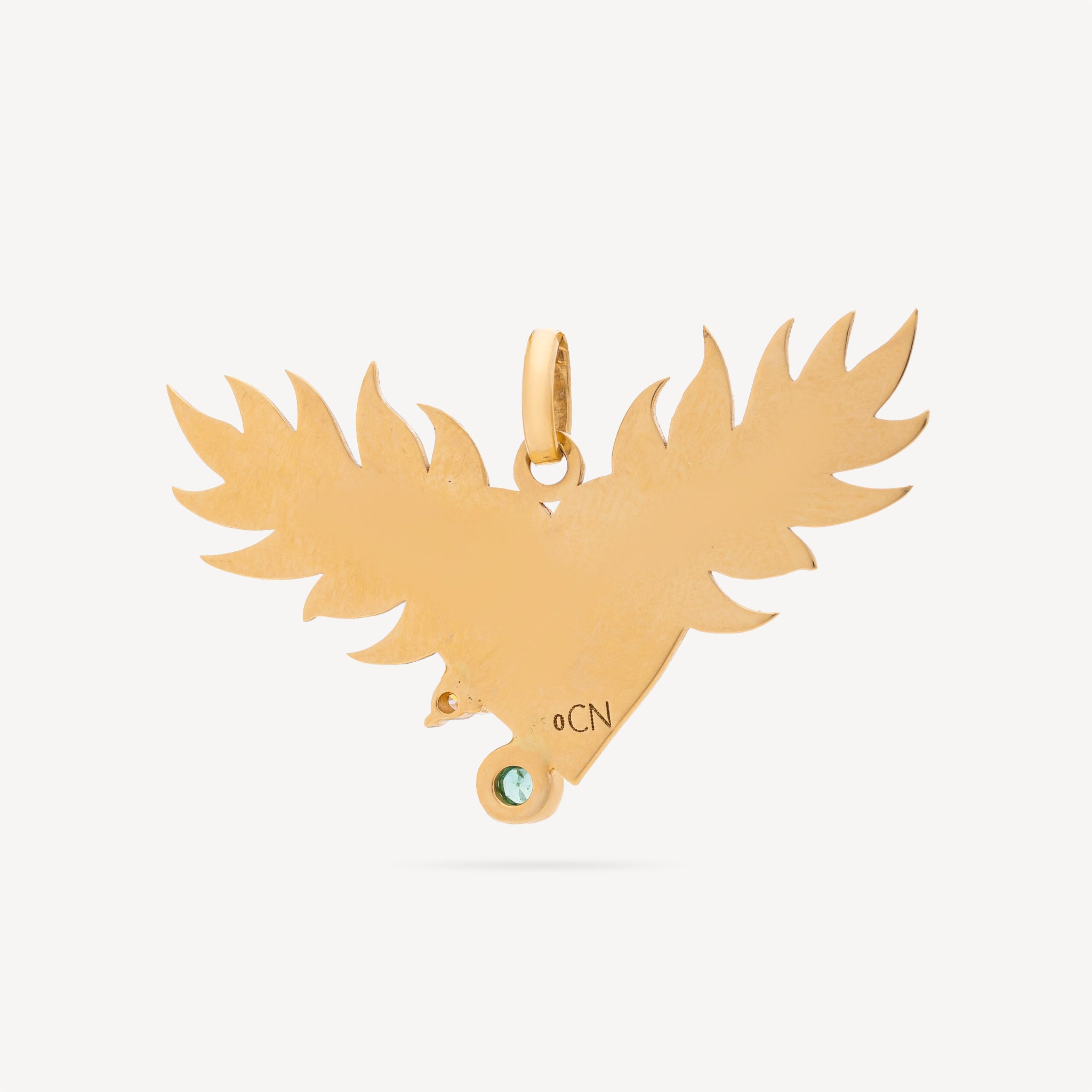Le pendentif cœur ailé emblématique de Carolina Neves allie puissance et légèreté, à l'image de ceux qui choisissent d'aimer avec courage. L'émeraude représente l'espoir, le diamant l'éternité.