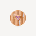 Textured rose gold ear stud adorned with a pink sapphire heart and white diamonds.