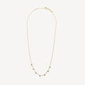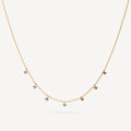 Yellow gold necklace adorned with seven hanging brown diamonds.