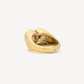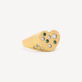 This heart-shaped ring is adorned with dazzling emeralds and sparkling diamonds. Featuring a matte finish, it will add an elegant touch to any outfit.