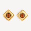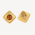 Vintage clip-on earrings in gold-finished metal decorated with an amber-colored gripoix.