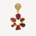 These elegant earrings are adorned with beautiful red tourmalines and designed with floral motifs in yellow gold. Add a touch of color and charm to your outfit with these unique earrings.