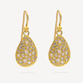 Add a sophisticated touch to your look with these pear-shaped gold earrings adorned with multi-cut white diamonds.