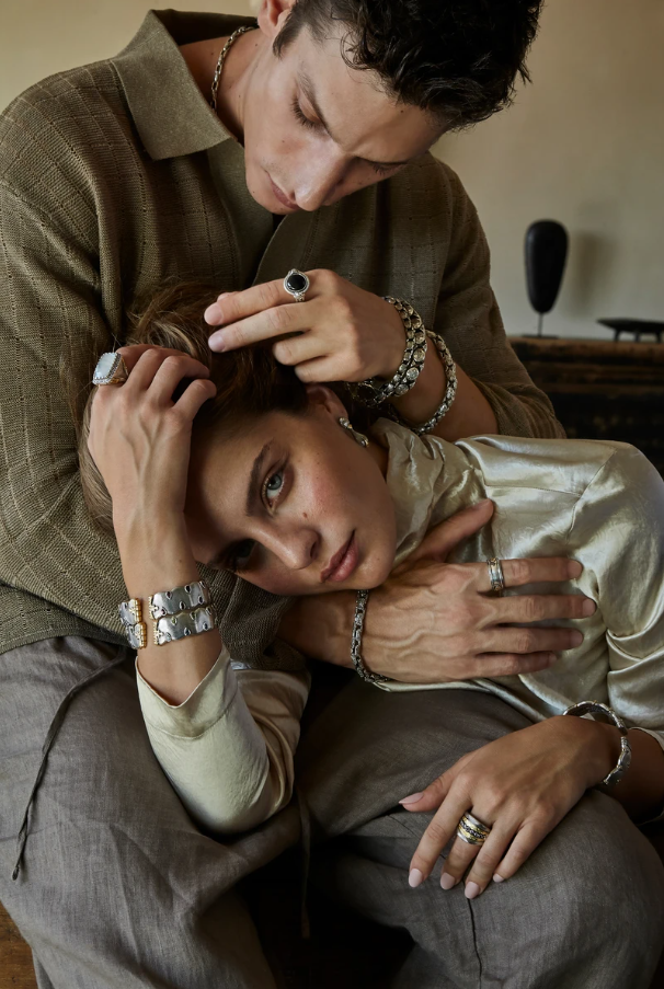Konstantino est une maison de joaillerie grecque fondée en 1993 à Athènes par le créateur Konstantinos Sioulas. Passionné par l’art et l’histoire de son pays, il a souhaité créer une marque qui rende hommage à l’héritage culturel grec tout en l’inscrivant dans une esthétique contemporaine. Inspirée par l’architecture byzantine, la mythologie et les symboles antiques, Konstantino développe un univers riche et profondément narratif. Chaque bijou est entièrement façonné à la main par des artisans experts, associant argent 925, or 18 carats et pierres précieuses dans des compositions minutieusement travaillées. Les contrastes de métaux, les gravures délicates et les détails sculpturaux donnent naissance à des pièces puissantes. À travers ses créations, Konstantino raconte une histoire : celle d’un savoir-faire traditionnel transmis avec passion, où l’élégance méditerranéenne rencontre un design moderne et affirmé.