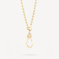 Necklace with hook pendant in yellow gold and white diamond.