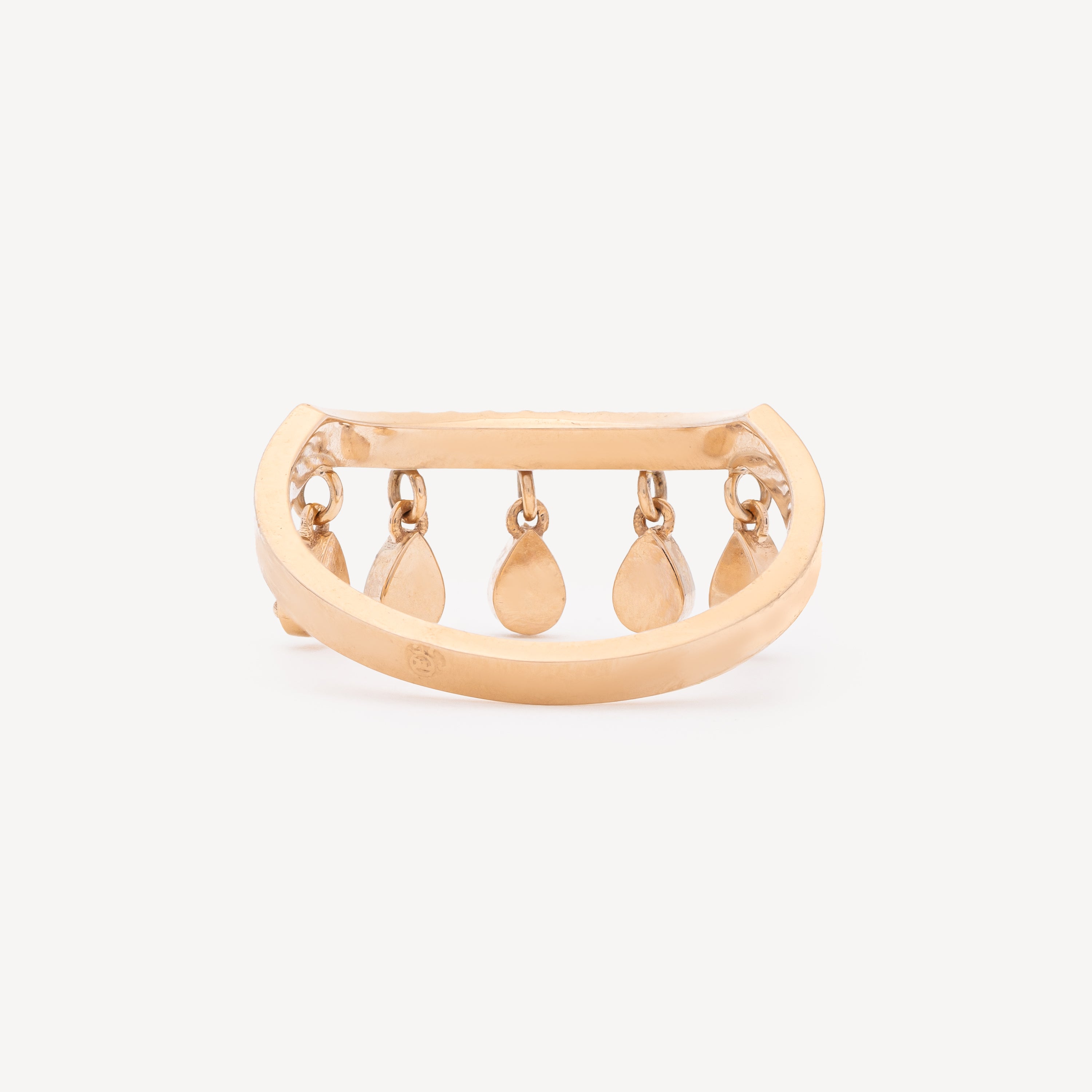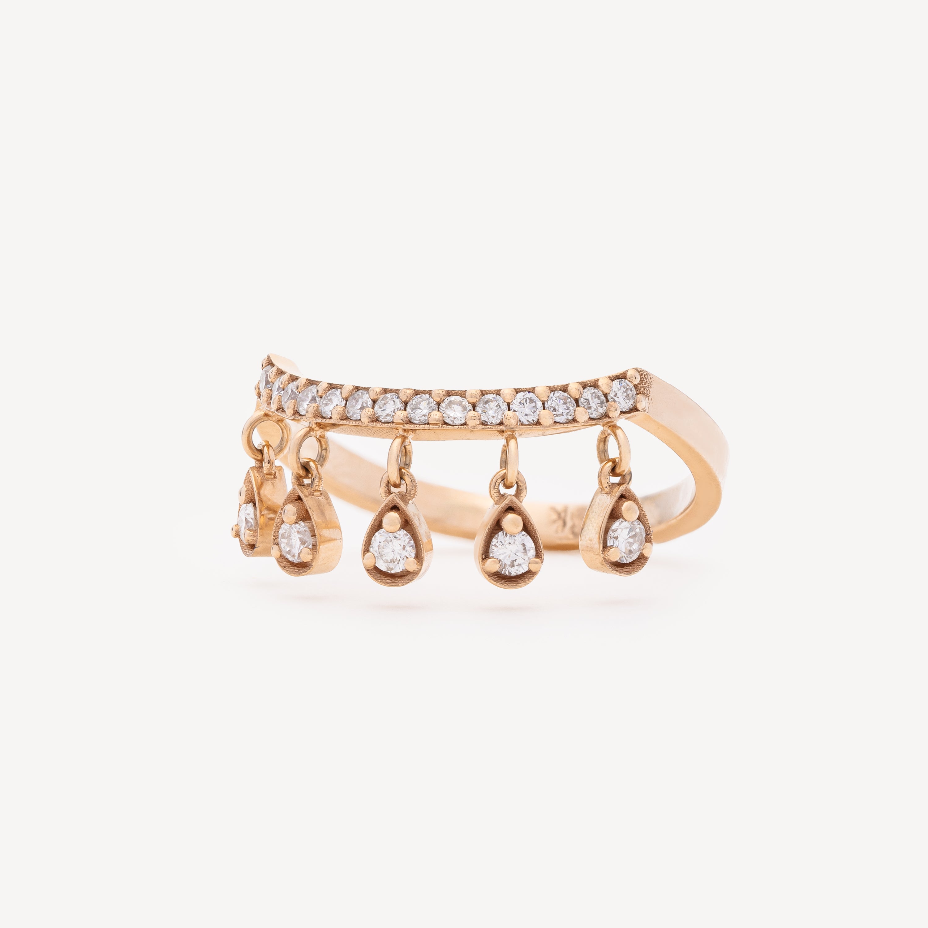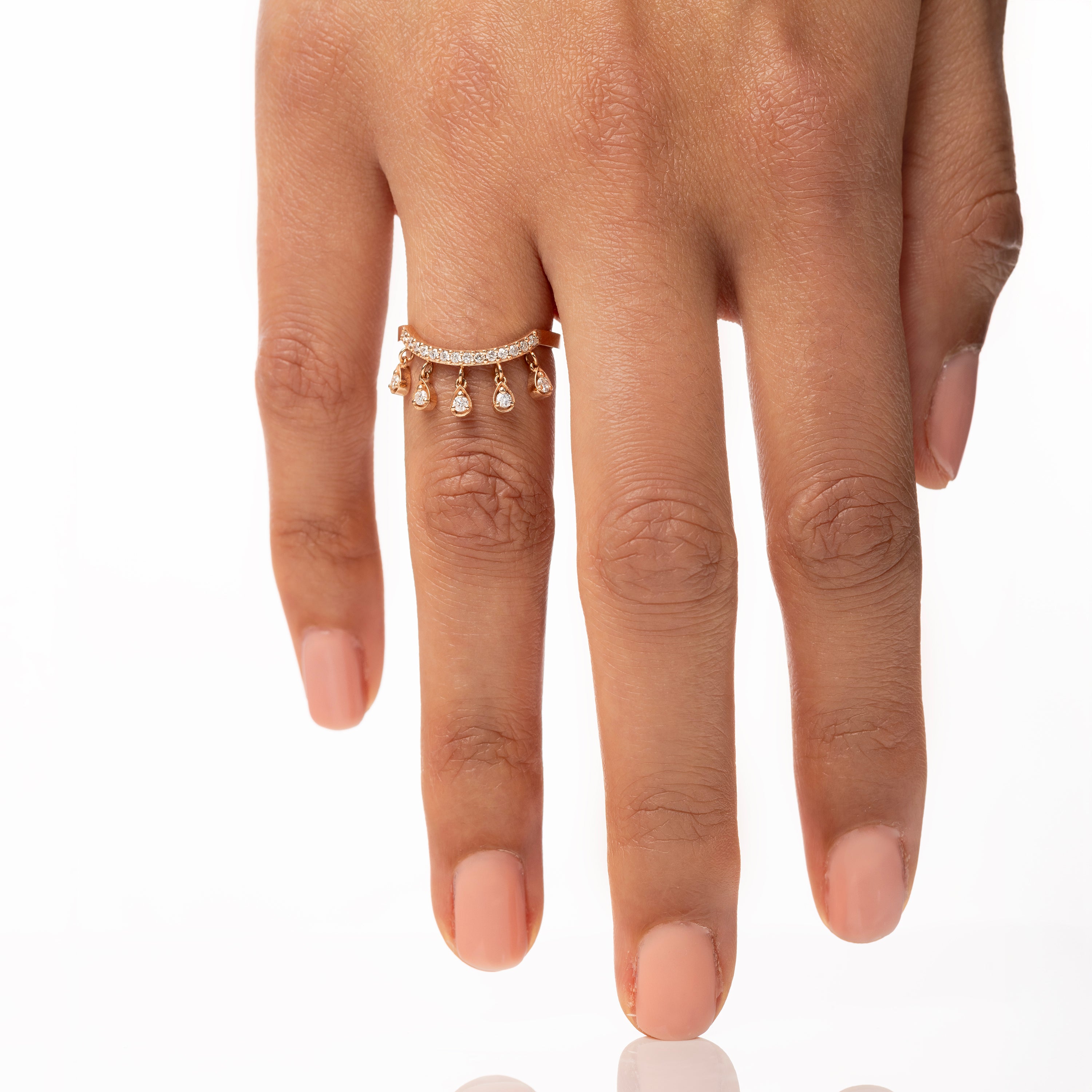 The Dancing Queen ring, from Touti Bo's Curved collection, is crafted in 14-carat rose gold and set with moving diamonds that dance to the rhythm of your movements. Inspired by the energy of the queen of the dance floor, it's sure to turn heads.