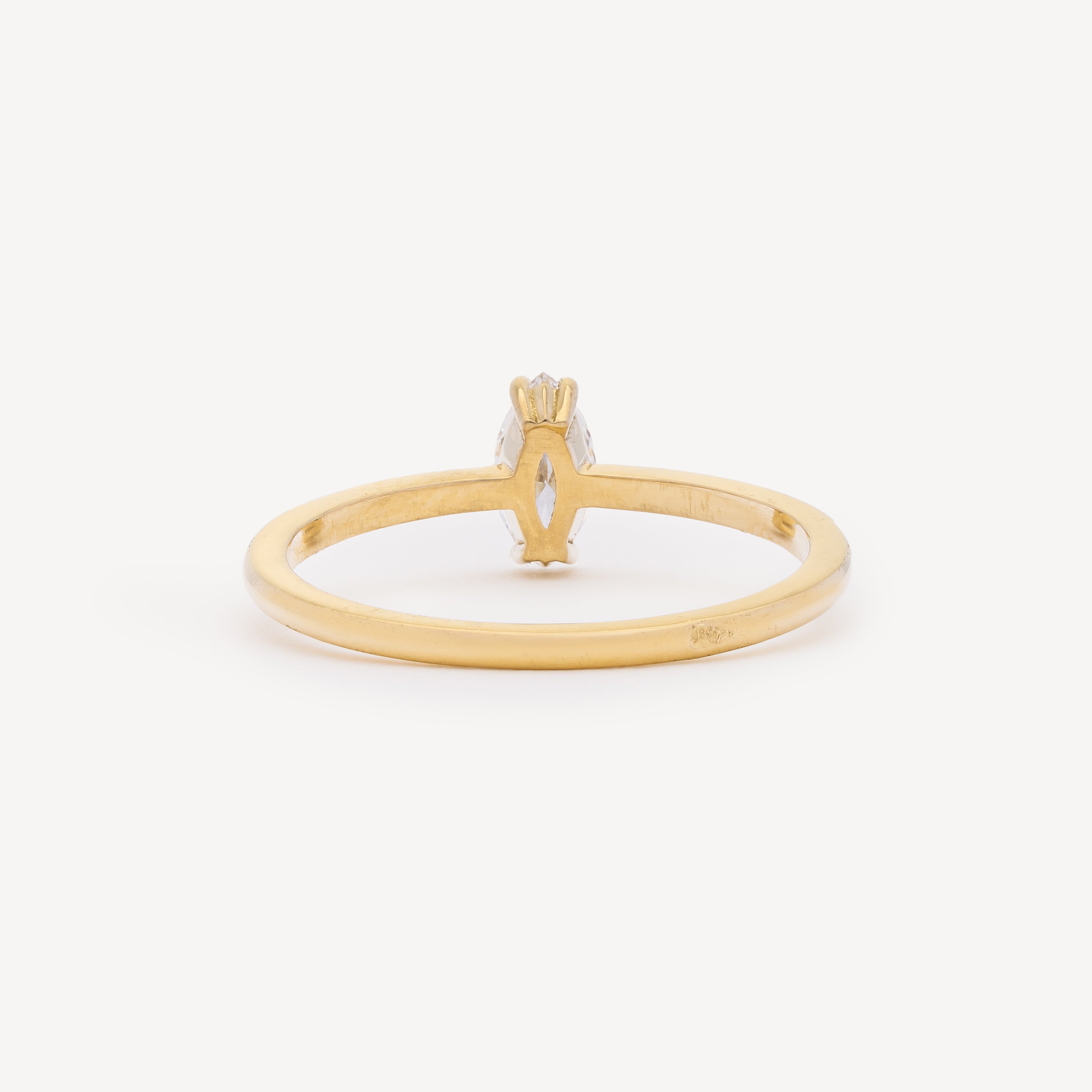 The magnificent marquise diamond solitaire ring features a stunning 0.3 carat diamond on an 18k yellow gold band in a low-profile setting. Perfectly adjustable for everyday wear and style.