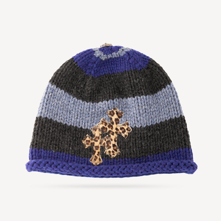 Blue Leopard Stripes Beanie