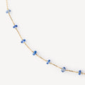 Yellow gold necklace with sapphires and clasp decorated with a sapphire charm.