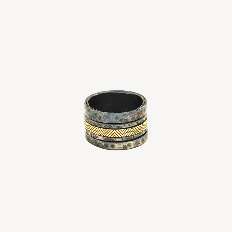 Hammered Mobile Yellow Gold Ring