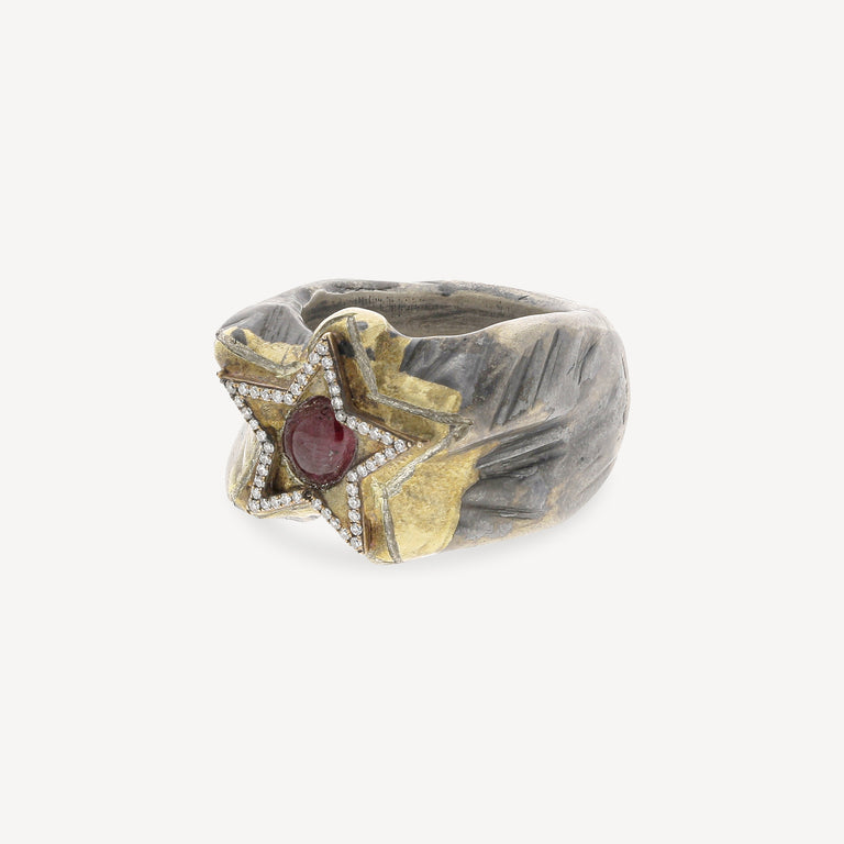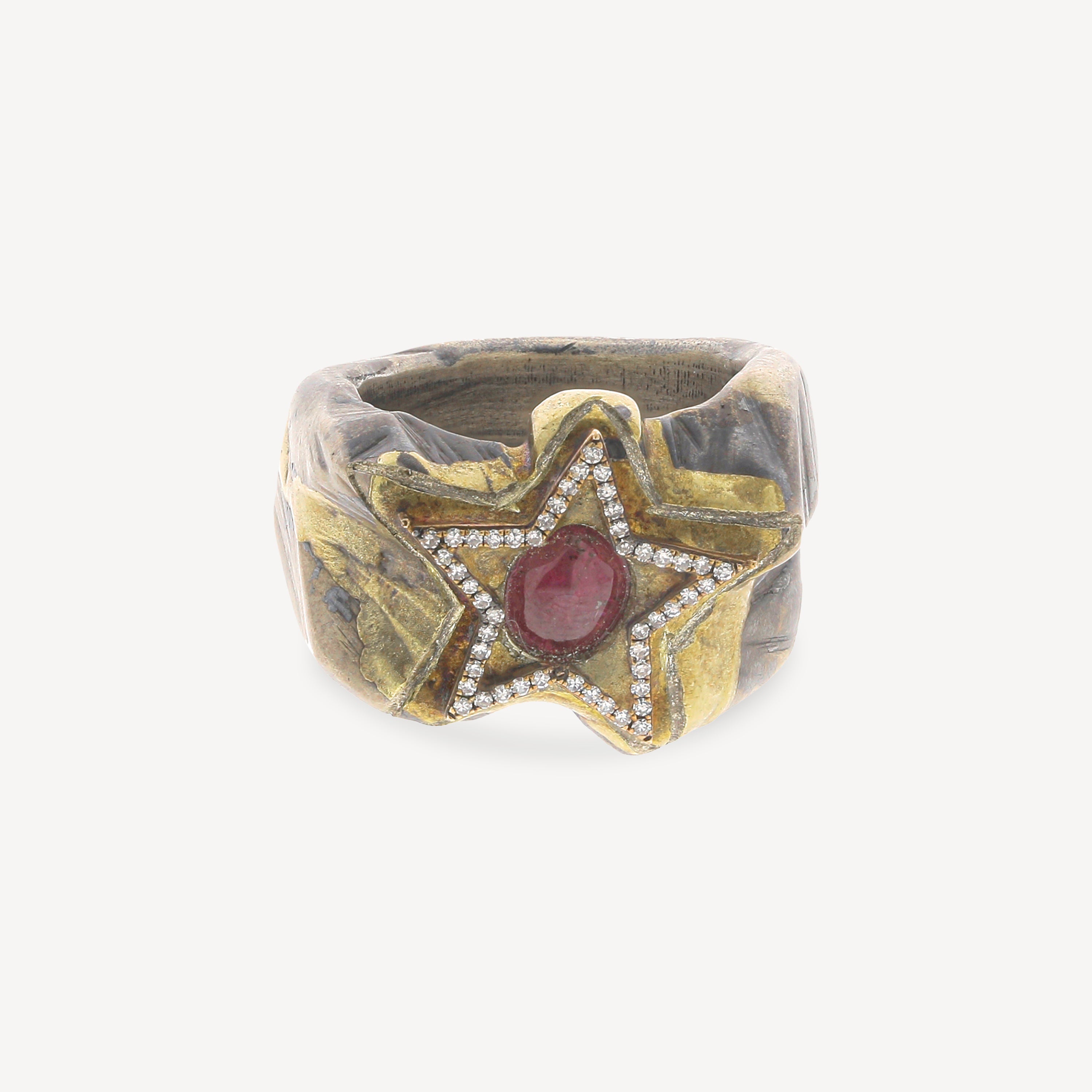• Materials: Yellow Gold, White Diamond, Silver, Ruby