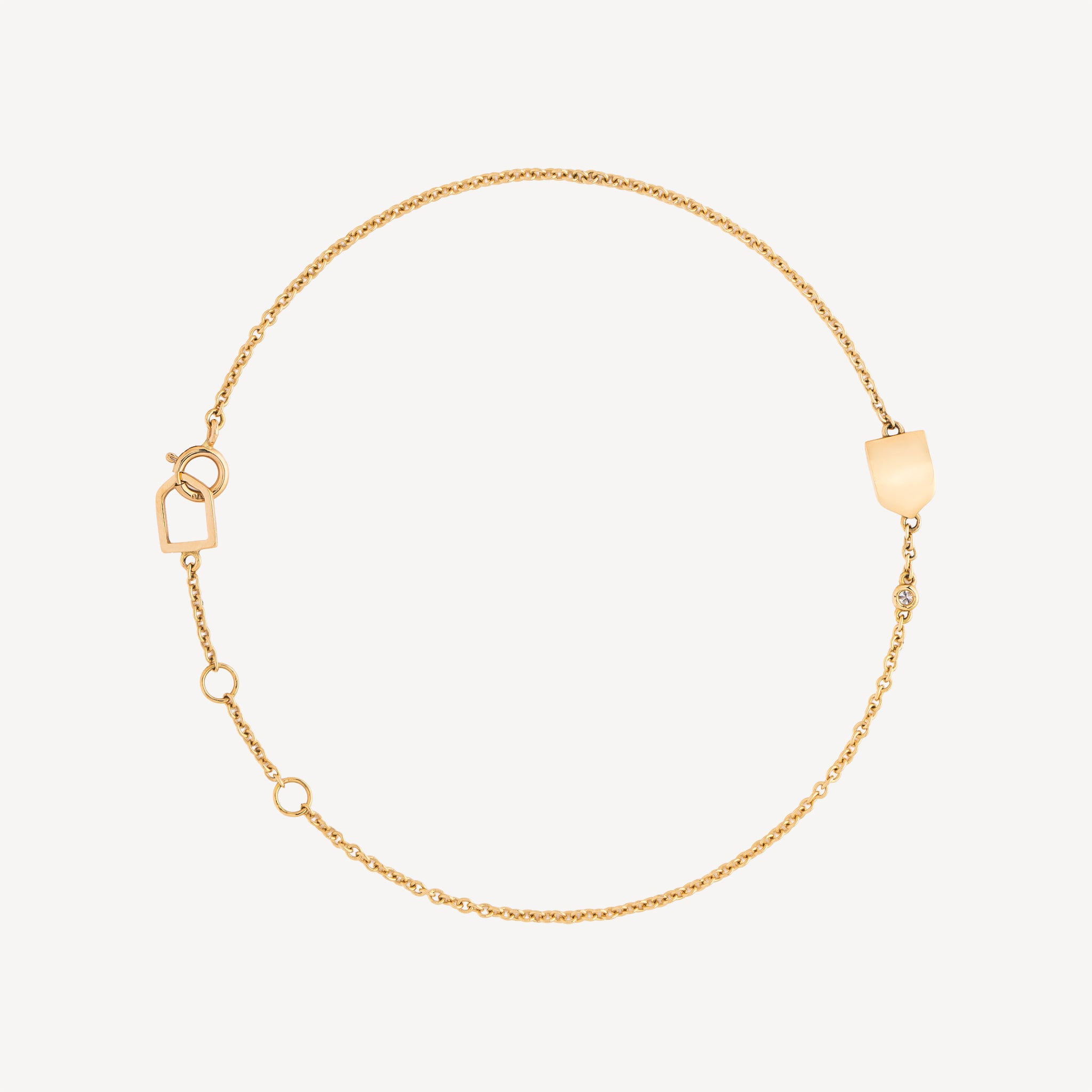 Le bracelet Talisman By en or jaune est composé d'un blason et d'un diamant blanc, symbole de clarté et de force intérieure. Un accessoire de joaillerie qui transcende l'esthétique pour devenir un véritable talisman du quotidien.