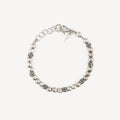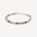 Bracelet with a sparkling design that explores all the possibilities of combined wearing. Hammered silver spheres follow small burnished silver spheres to bring to life an exquisite and classic artisanal creation.