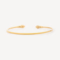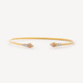 Yellow gold bangle bracelet adorned with two adularia and white diamonds at the end of the bangle.