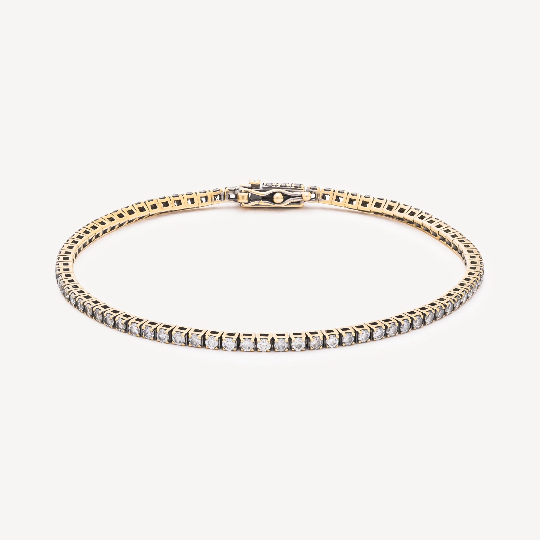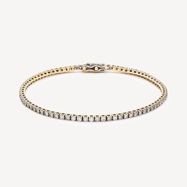 Un bracelet tennis d’une élégance intemporelle, en or jaune, délicatement pavé de diamants blancs à la brillance subtile et sophistiquée.