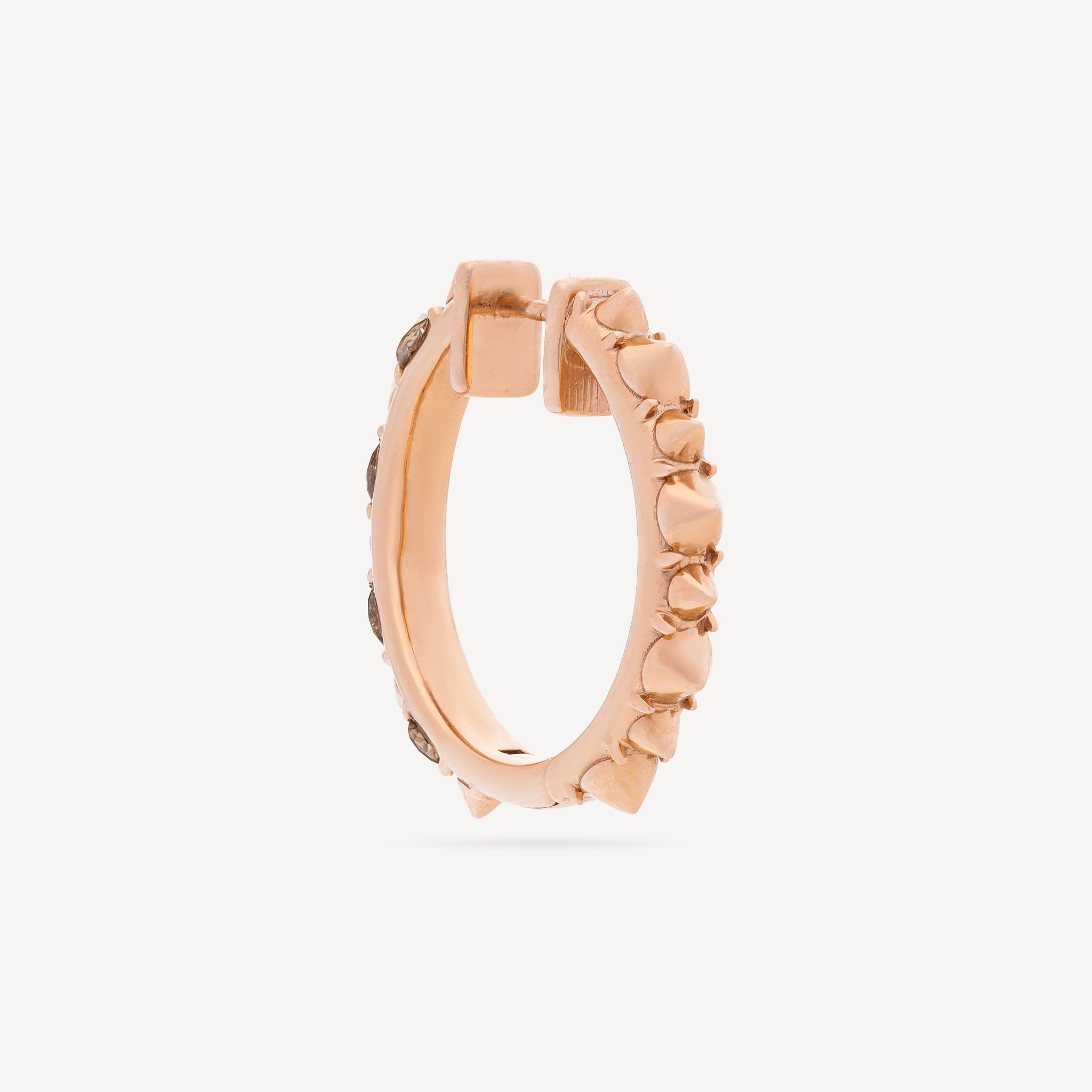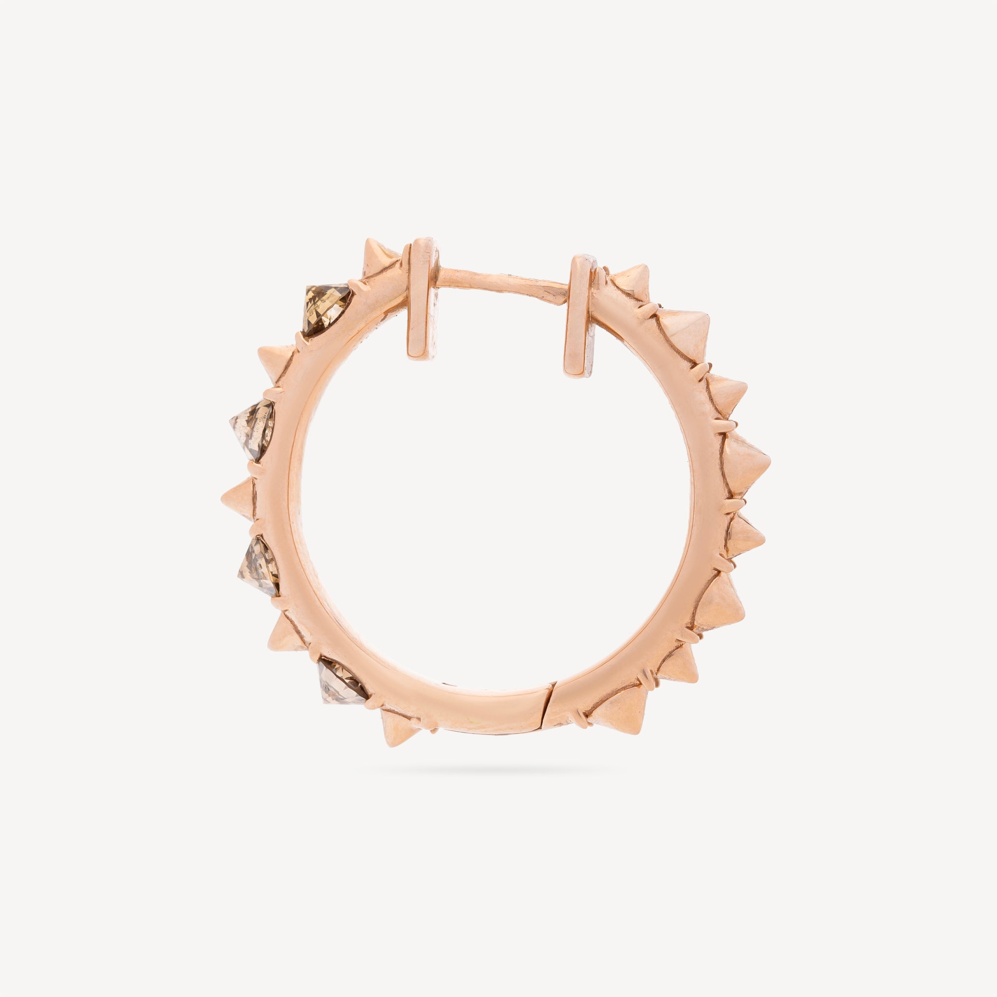 La boucle d’oreille Beverly Hills de Genevieve Lau revient dans une version encore plus audacieuse, avec un format agrandi qui attire tous les regards. Son anneau est orné du détail iconique en forme de pointe ainsi que de diamants champagne, pour une allure affirmée et sophistiquée. Disponible en or rose 14 carats. Véritables symboles de force et de lumière, les diamants qui la parent renforcent la confiance en soi et révèlent l’éclat intérieur de celle qui les porte.