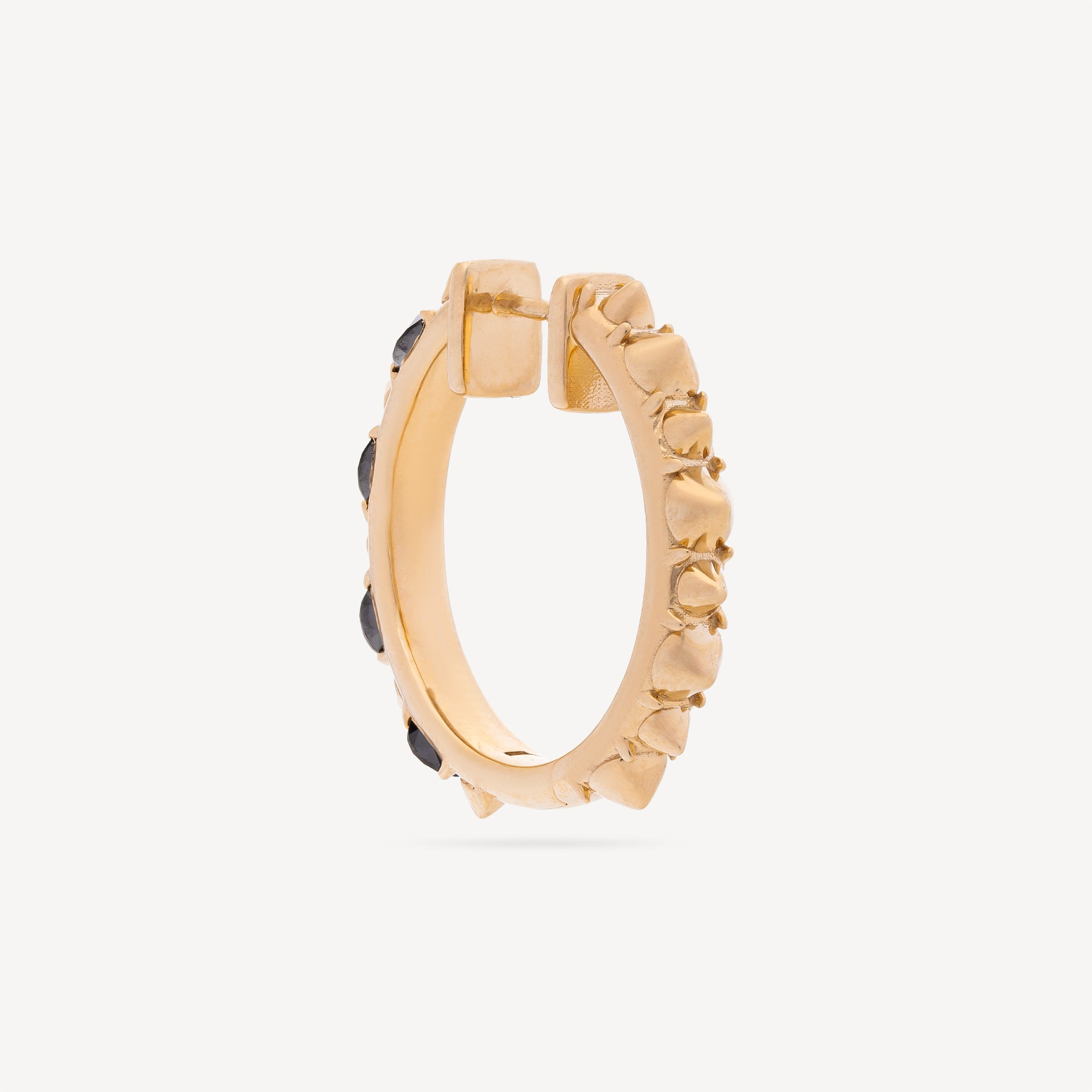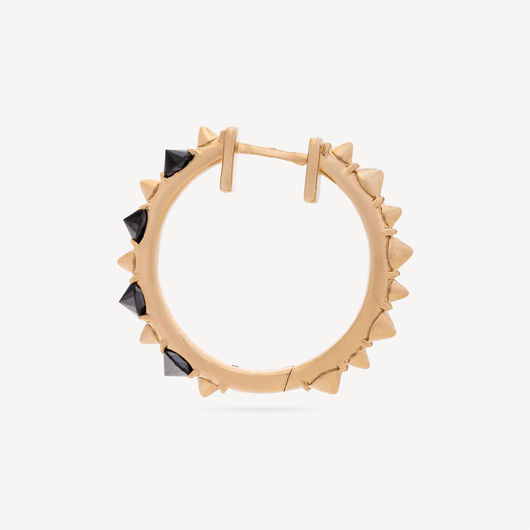 La boucle d’oreille Beverly Hills de Genevieve Lau se réinvente dans une version plus imposante et audacieuse avec l’ajout de diamants noirs. Son anneau est rehaussé d’un détail en forme de pointe, pour une allure toujours affirmée et résolument sophistiquée. Mystérieux et puissants, les diamants noirs apportent force, protection et ancrage, tout en révélant un caractère aussi unique qu’intense.