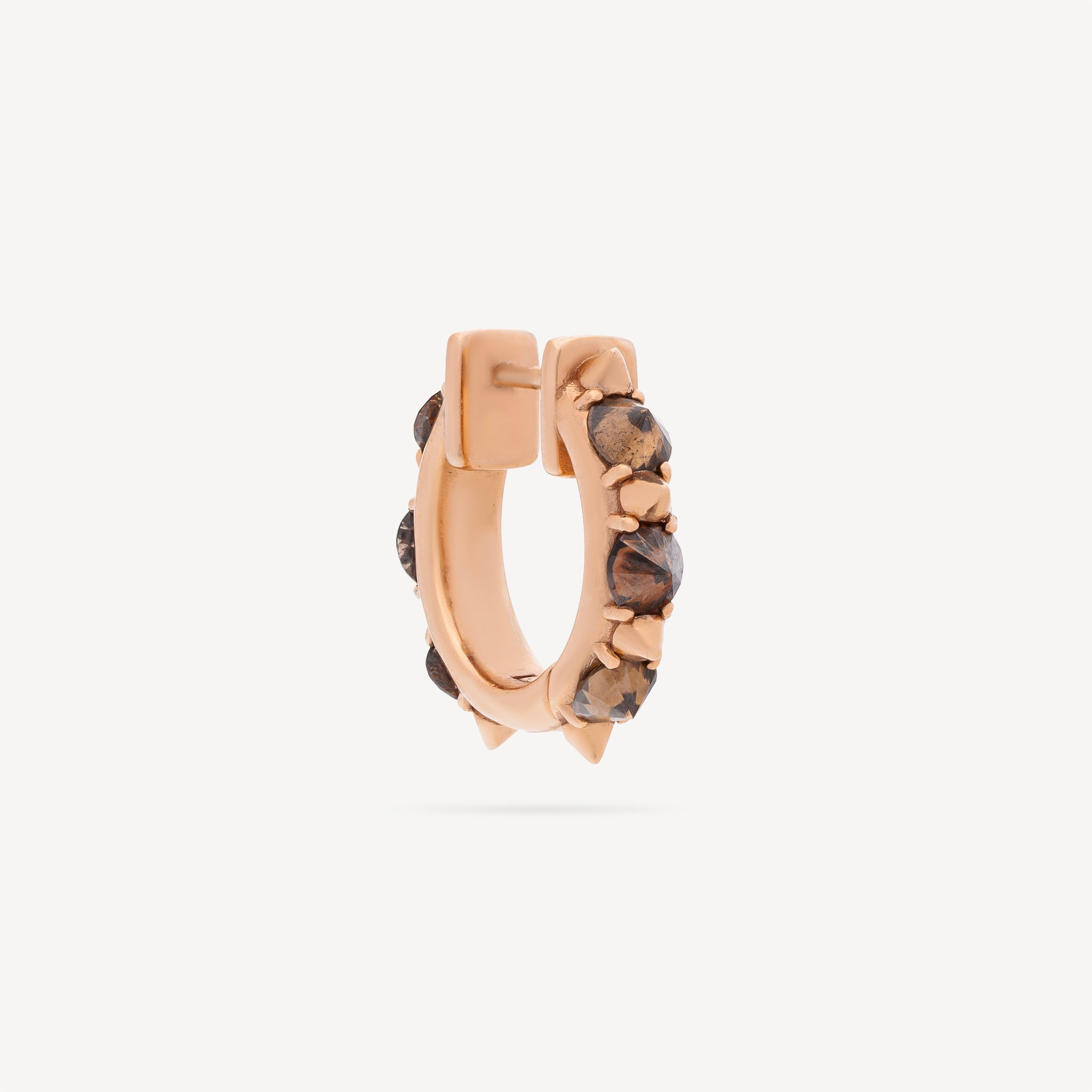 La boucle d’oreille Beverly Hills de Genevieve Lau se décline dans une version encore plus raffinée en or rose, sertie de diamants champagne à l’avant comme à l’arrière. Son design signature, sublimé par un détail en forme de pointe, affirme une allure audacieuse et résolument élégante. Les diamants champagne allient douceur et éclat, apportant équilibre, énergie chaleureuse et confiance rayonnante à celle qui les porte.