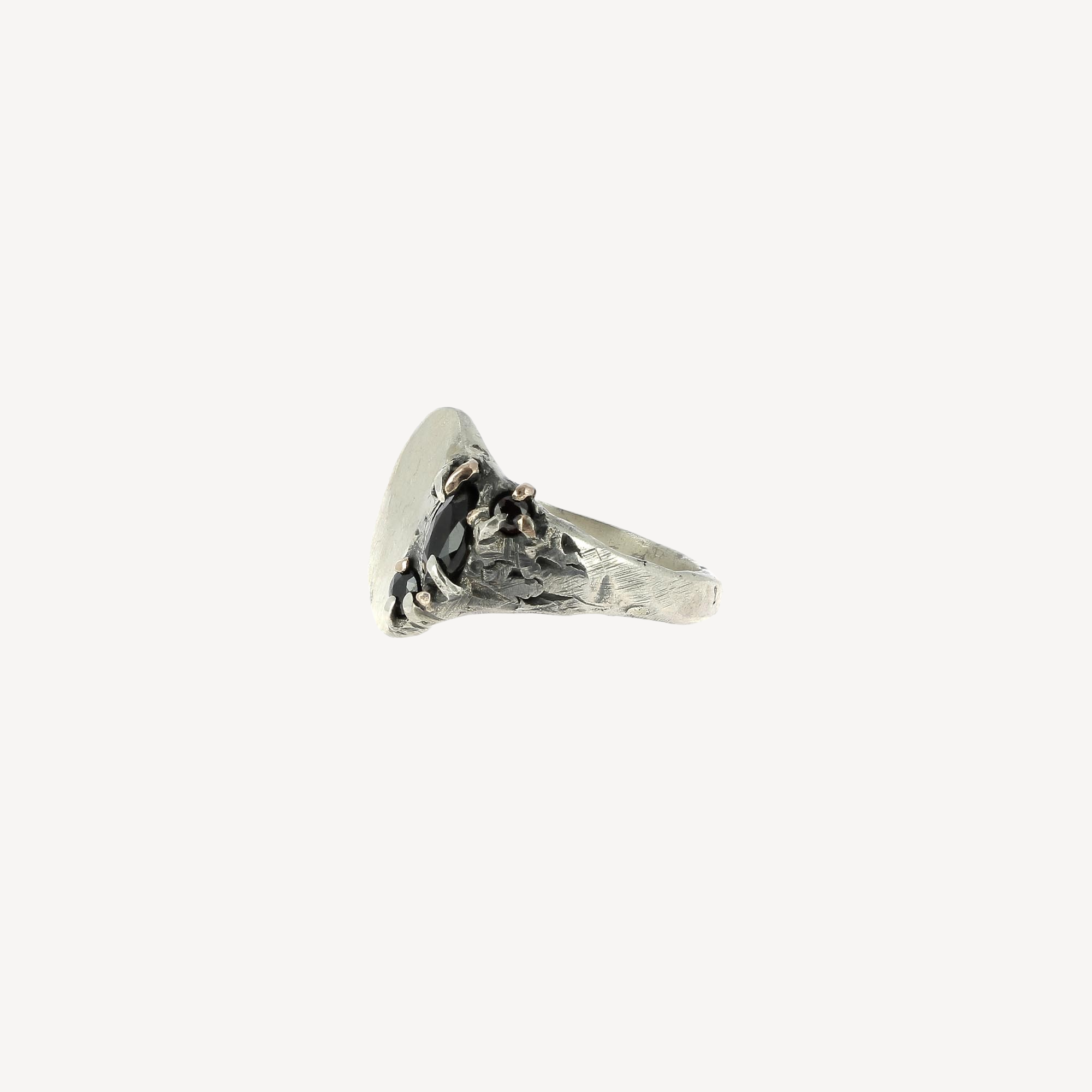 Black Diamond, Garnet and Smoky Quartz Signet Ring