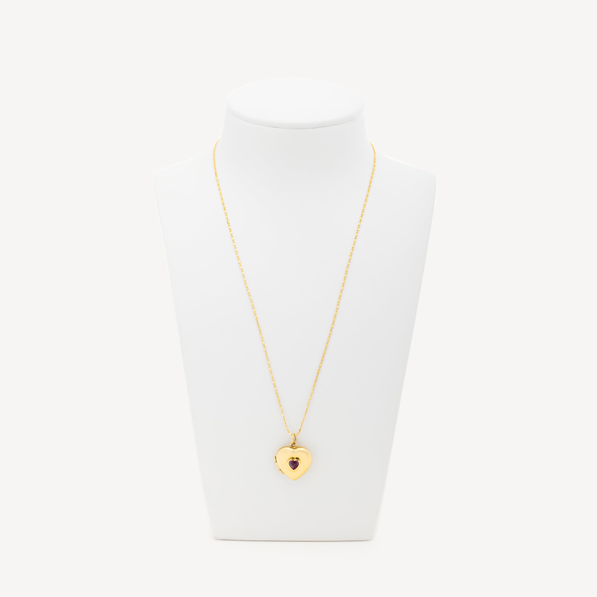 Le collier Lily Ruby Locket en or jaune 18 carats dispose d''un pendentif en forme de cœur sublimé par un rubis, également en forme de cœur. Le pendentif s'ouvre et révèle un espace idéal pour y plonger vos secrets. Le rubis stimule l’énergie du cœur, renforce le courage et inspire l’amour intense.