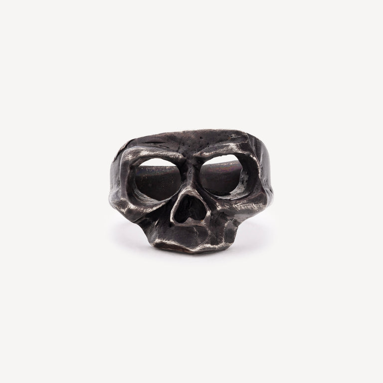 La bague Skull Mask représente une tête de mort en argent oxydé, qui apporte une touche plus artistique.
